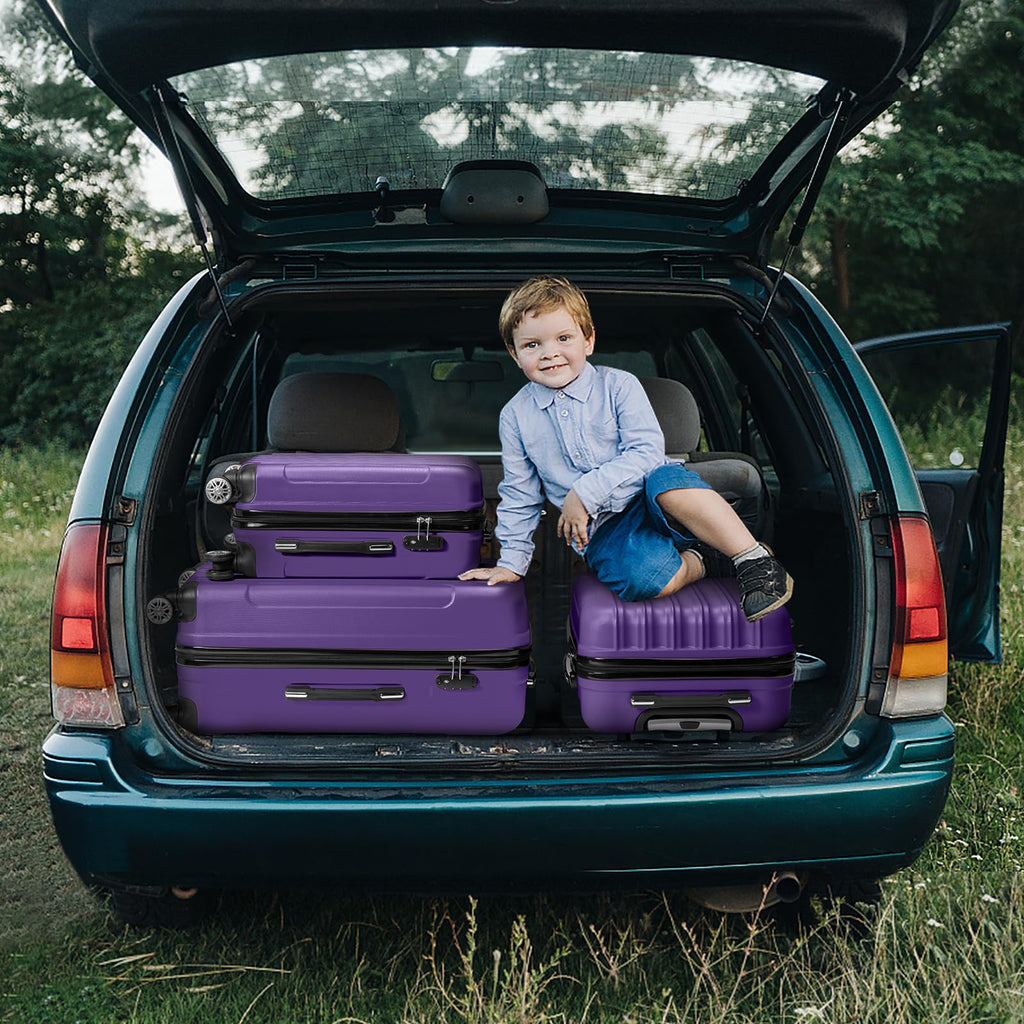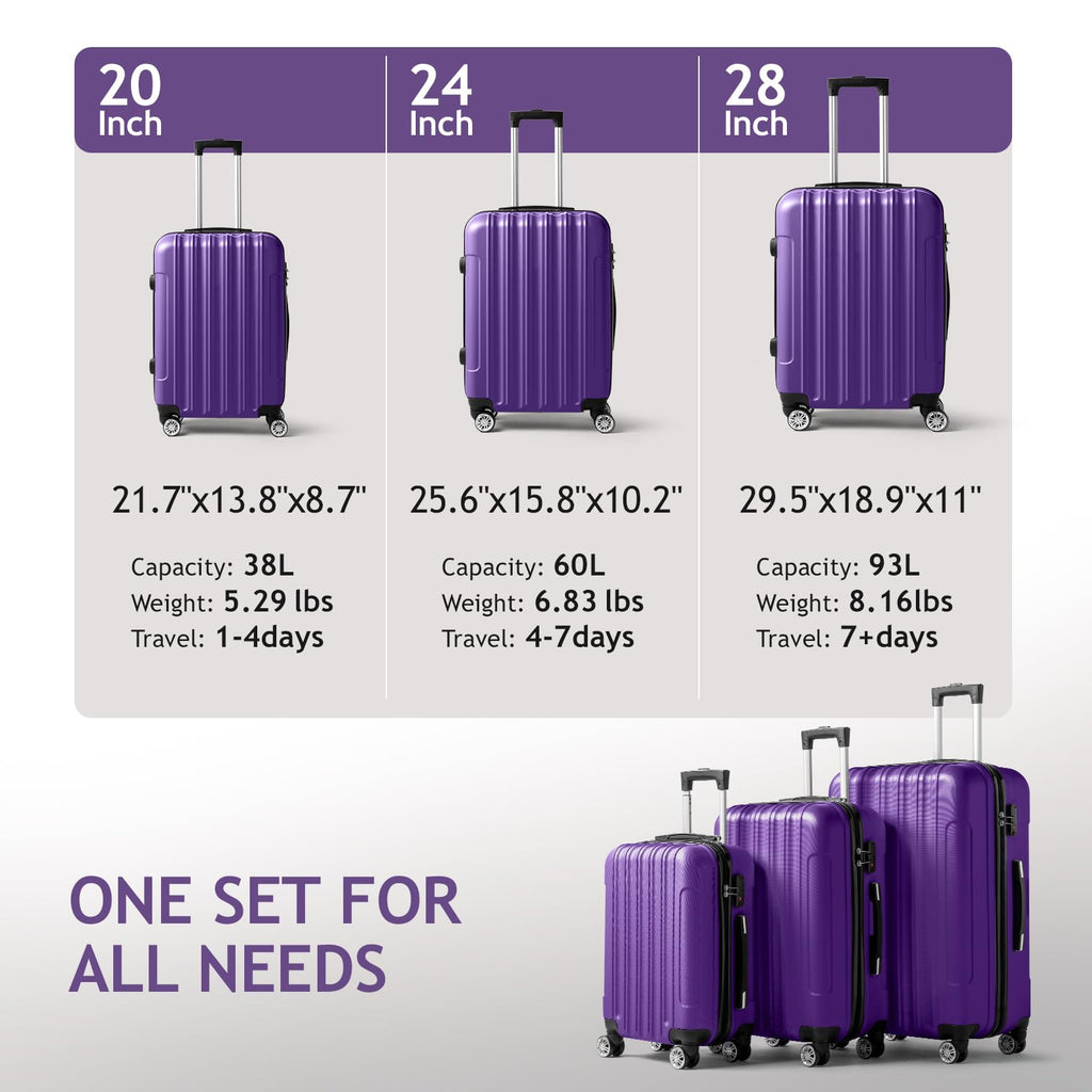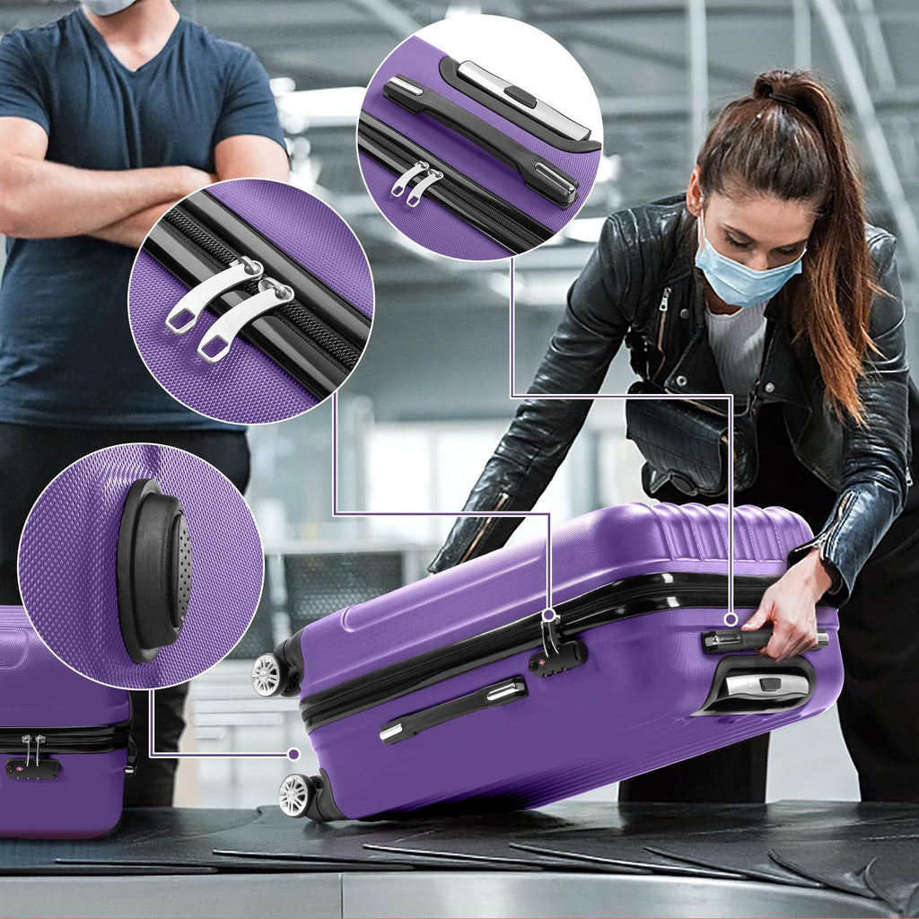 Karl home Luggage Set of 3 Hardside Carry on Suitcase Sets with Spinner Wheels & TSA lock, Portable Lightweight ABS Luggages for Travel, Business - Purple (20/24/28)