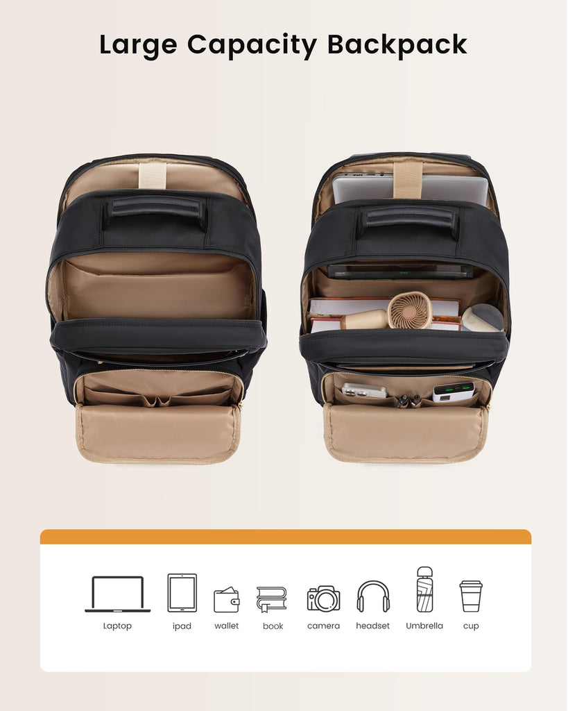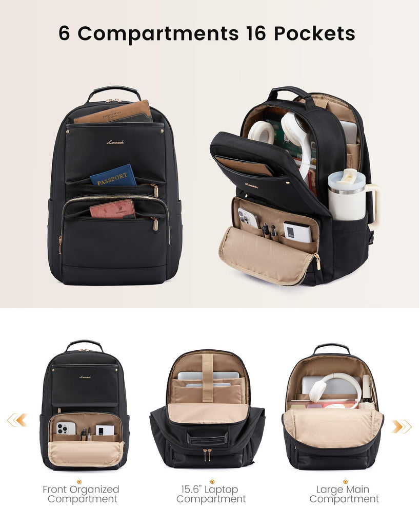 LOVEVOOK Laptop Backpack for Women with Large Capacity Cup Pocket, 15.6 inch Work Purse Travel Bag for Teacher Nurse, Waterproof Computer Business Back Pack, Cute Bookbag for School College, Black