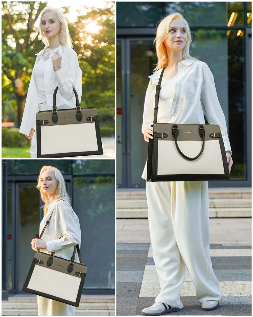 - 【Versatile & Practical】This laptop tote has an adjustable length shoulder strap that makes the computer bag to be a handbag, cross-body bag, and suitable for people of different sizes, making it suitable for a variety of occasions and perfect for work, travel, business meetings, and everyday use.