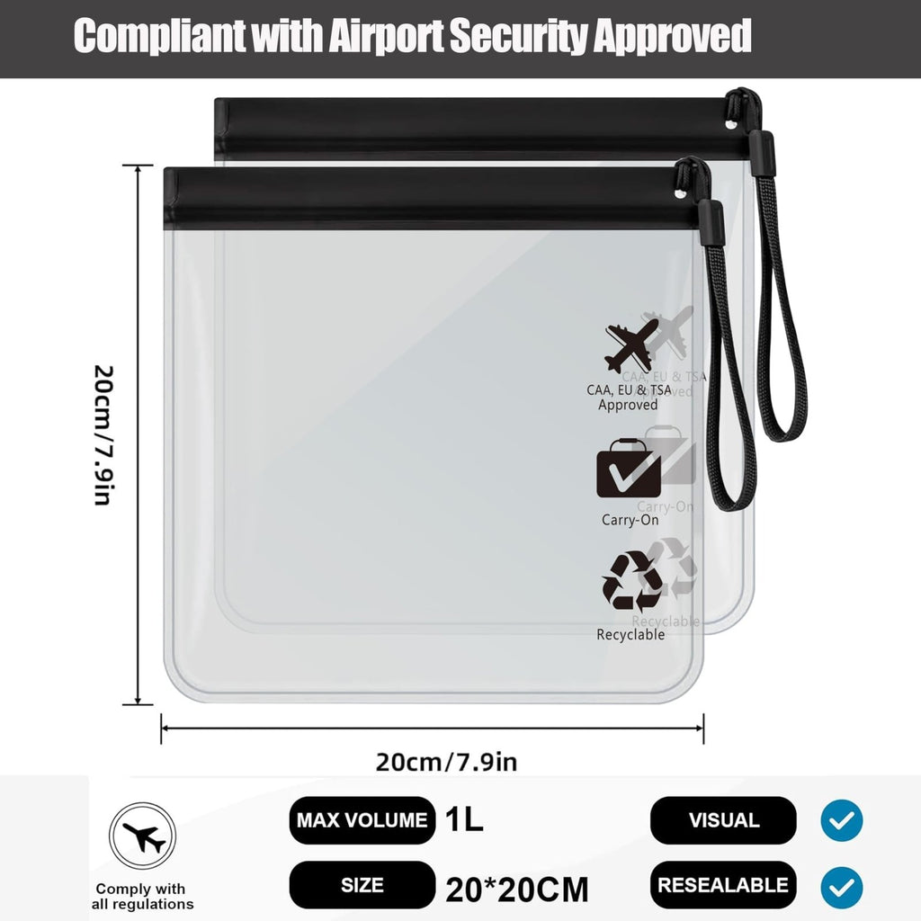 - 【Keep your hands free】: The liquids bag for airport with a handle allows you to keep your hands free when carrying travel documents. They seal at the top and have a short nylon carry handle that you can attach so you can loop it.