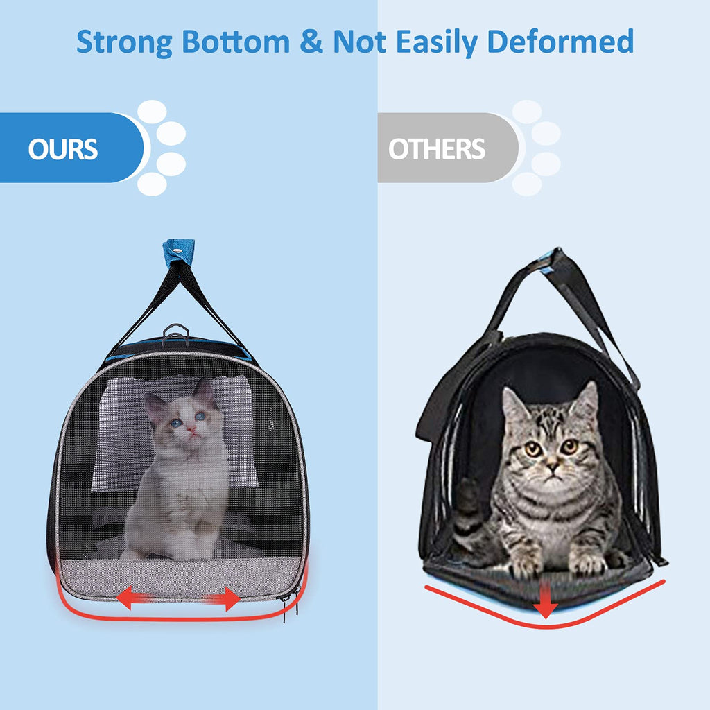 Brand: BurgeonNestColor: BlueFeatures: Soft Cat Carrier: BurgeonNest Pet carrier measures 17.7"L x 12"W x 12.5"H, weights 2.5 lbs perfect for pets under 20 lbs; ideal for travel/ vacation/ leisure/ hiking/ car/ outdoor activities etc. Well-made Large Cat Carrier: With upgraded memory metal for sturdy frame, this cat carrier for 2...