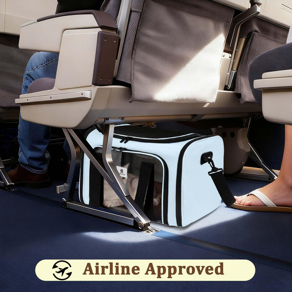 - 【Airline Approved Pet Carrier】With dimensions of 17.7" (L) x 11.2" (W) x 11" (H), this pet carrier is approved for in-cabin use on Delta Air Lines, United Airlines, and American Airlines. For optimal fit and comfort, we recommend pets up to 16.5" (L) x 10" (W) x 9.5" (H) and weighing under 16 lbs. To ensure your pet's comfort, please ensure to verify your pet's size and weight prior to purchase