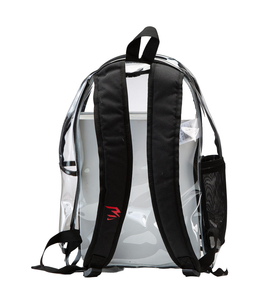 Brand: NikeColor: BlackFeatures: Backpack Dimensions: 18’’H x 12’’ L x 6’’ D Full Zipper Closure. Zippered Main Compartment. One Exterior Functional Zipped Pocket. One Side Mesh Water Bottle Pocket. Adjustable Padded Shoulder Straps. Binding: Apparelmodel number: 9AT053-023Details: Description Step up your style game with the Nike 3Brand Clear Backpack, a...