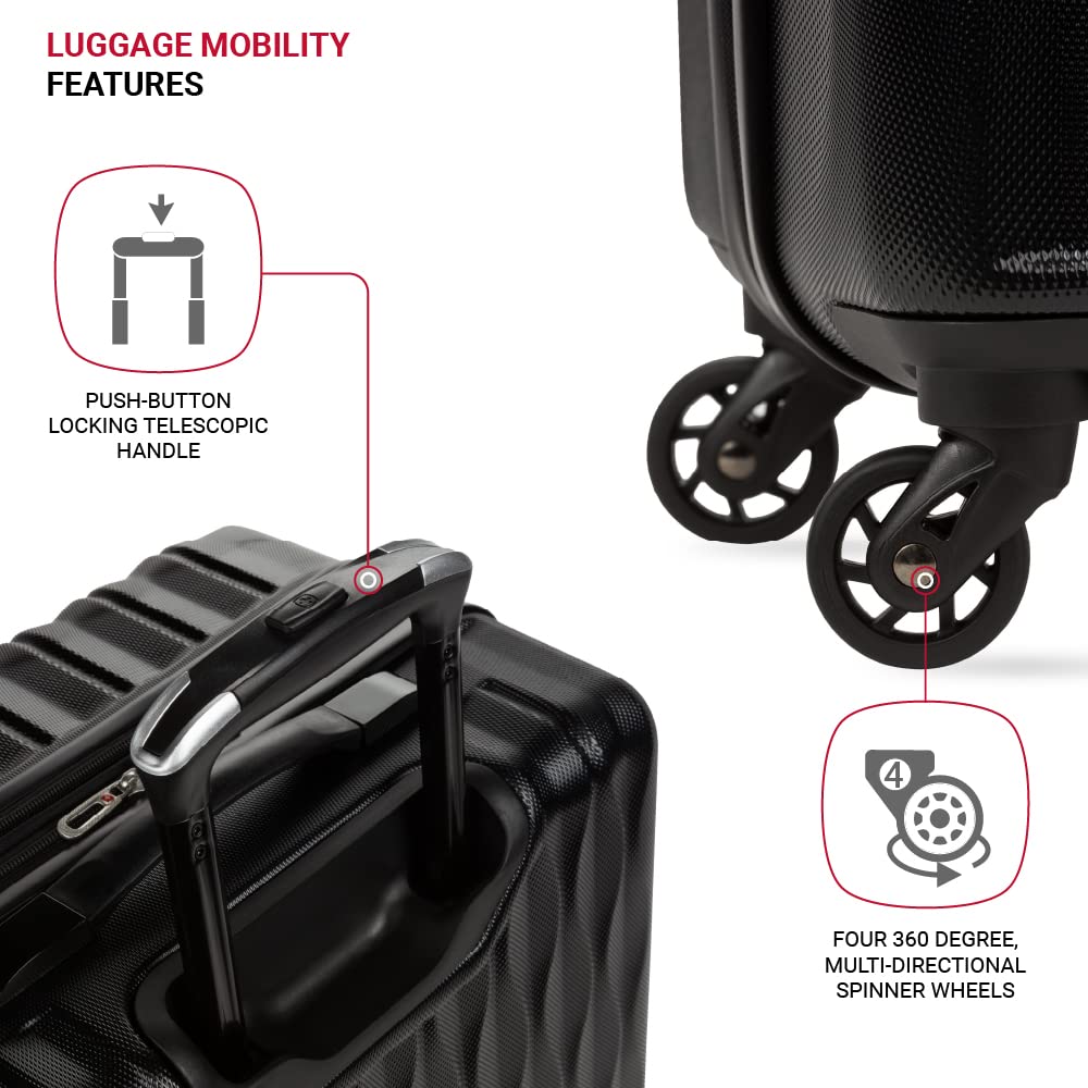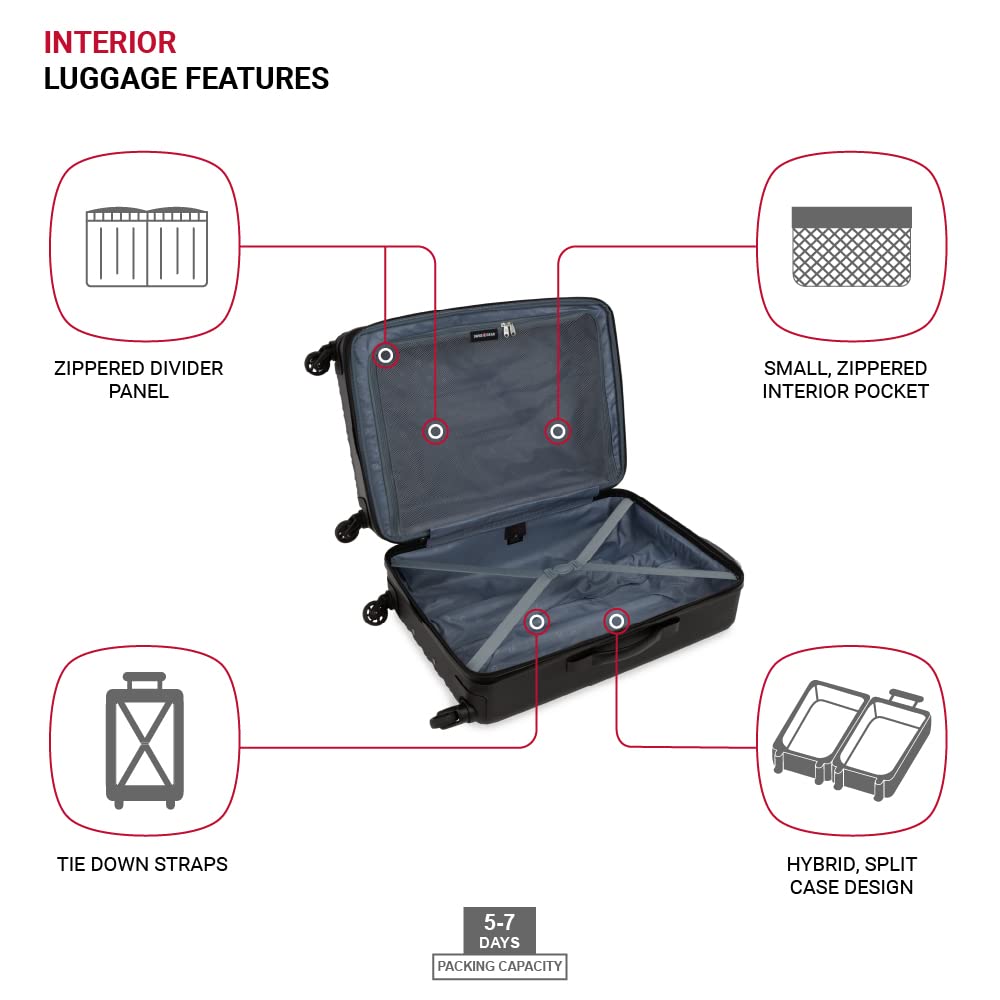 SwissGear 8018 Expandable Luggage, Hard Shell Medium Luggage with Spinner Wheels
