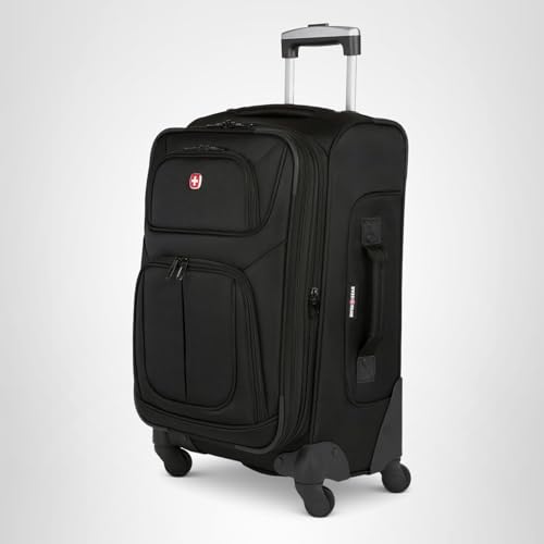 SwissGear Sion Softside Expandable Luggage – Carry-On Suitcase with 360 Degree Wheels & Retractable Handle – 21 Inch, Perfect for 1-3 Night Trips – Black