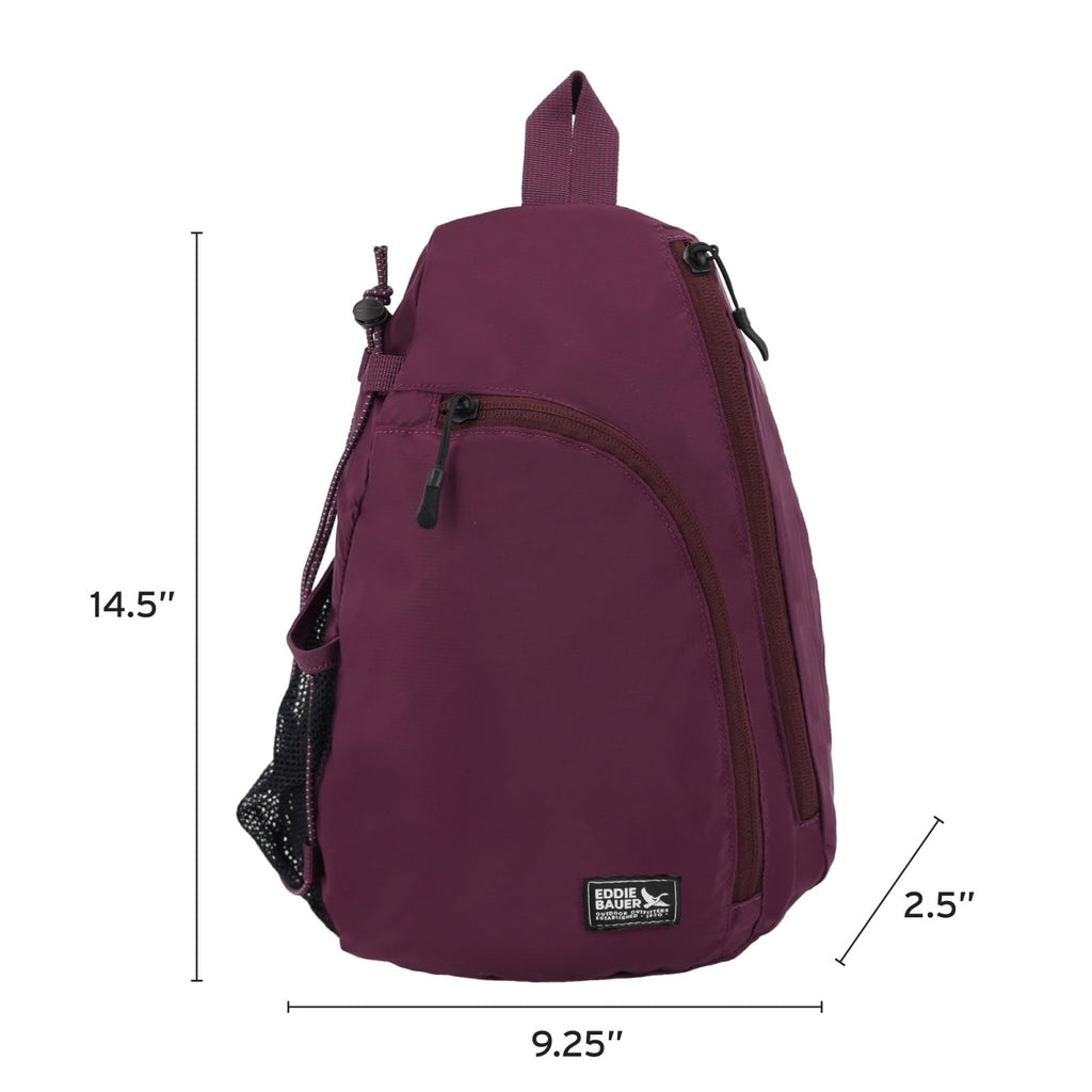 Eddie Bauer Ripstop 8L Shoulder Sling Pack with Padded Air-Mesh Adjustable Crossbody Strap for Right or Left Handed Fit - Dk Plum