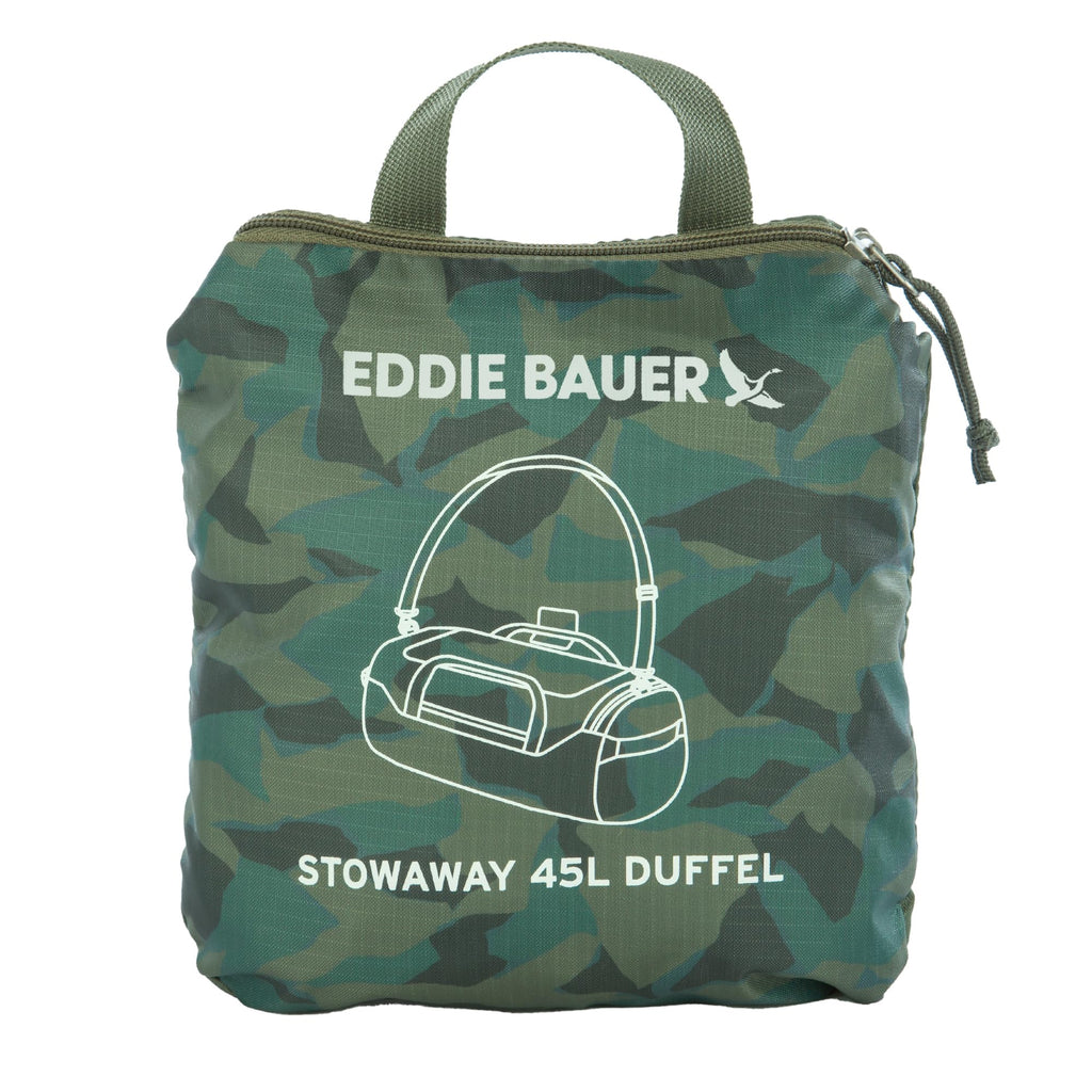 The Eddie Bauer Stowaway Packable 45L Duffel Bag is the ultimate travel companion, blending durability, functionality, and sustainability. Designed with the adventurous traveler in mind, this duffel features a spacious 45-liter capacity to easily store all your essentials, whether you're embarking on a weekend getaway, a family vacation, or an outdoor expedition. Crafted from 200-denier ripstop polyester with a StormRepel WR finish, this bag is built to withstand harsh conditions while keeping your belongings dry and secure. It includes thoughtful features like a zippered shoe garage to separate footwear and a trolley-handle sleeve for effortless attachment to rolling luggage. When not in use, the packable design allows the duffel to fold into its own 9.5" x 9" pocket, making it incredibly easy to store and carry. Eddie Bauer's dedication to sustainability is evident in its use of eco-conscious materials and methods, ensuring a minimal environmental footprint. Measuring 11.75" x 23" x 11.75" (open) and weighing just 1.2 lbs, the Stowaway Duffel is perfect for travel, gym sessions, road trips, and outdoor adventures. Experience the perfect balance of innovation and style with Eddie Bauer.