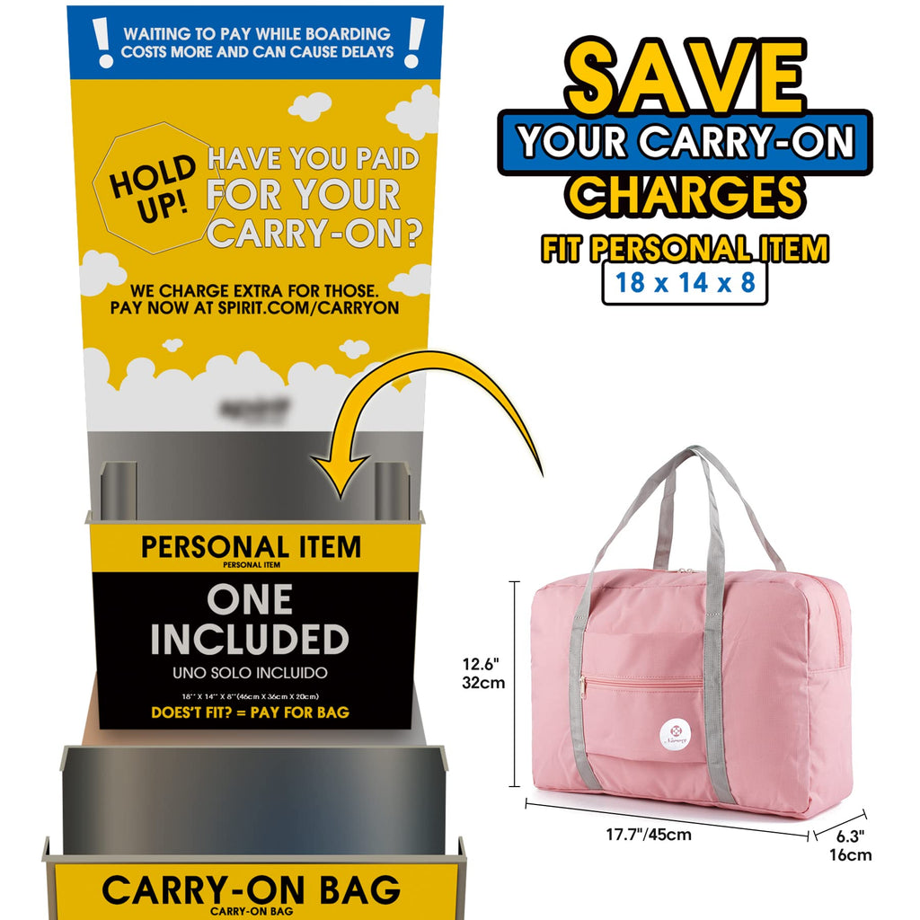 Narwey For Spirit Airlines Foldable Travel Duffel Bag Tote Carry on Luggage Sport Duffle Weekender Overnight for Women and Girls (1112 Pink)