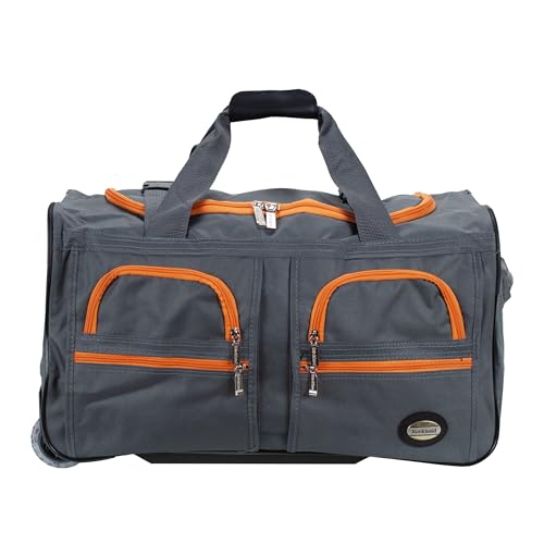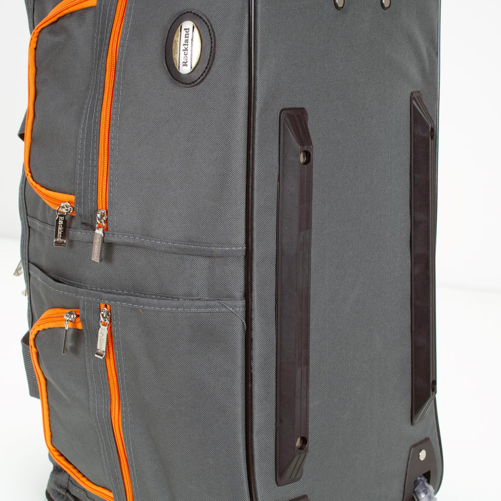 Brand: RocklandColor: CHARCOALFeatures: Two large front pockets Clear skate wheels Full lining Expandable Internal handle Binding: Apparelmodel number: PRD322-CHARCOALPart Number: PRD322-CHARCOALDetails: Description Travel in style with this great soft-sided rolling duffle bag. Bag features a heavy duty polyester construction. Inline skate wheels for superior mobility, internal retractable hide-away handle system,...