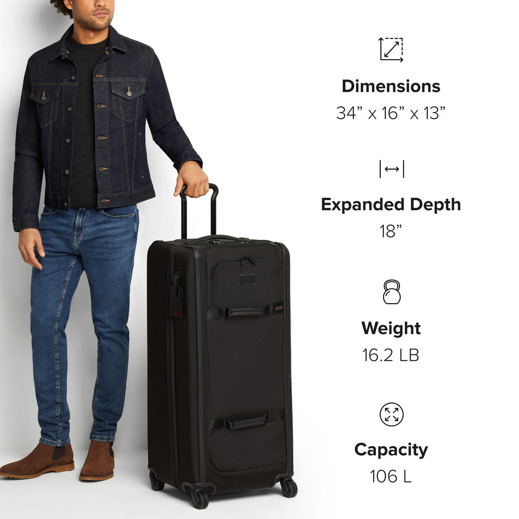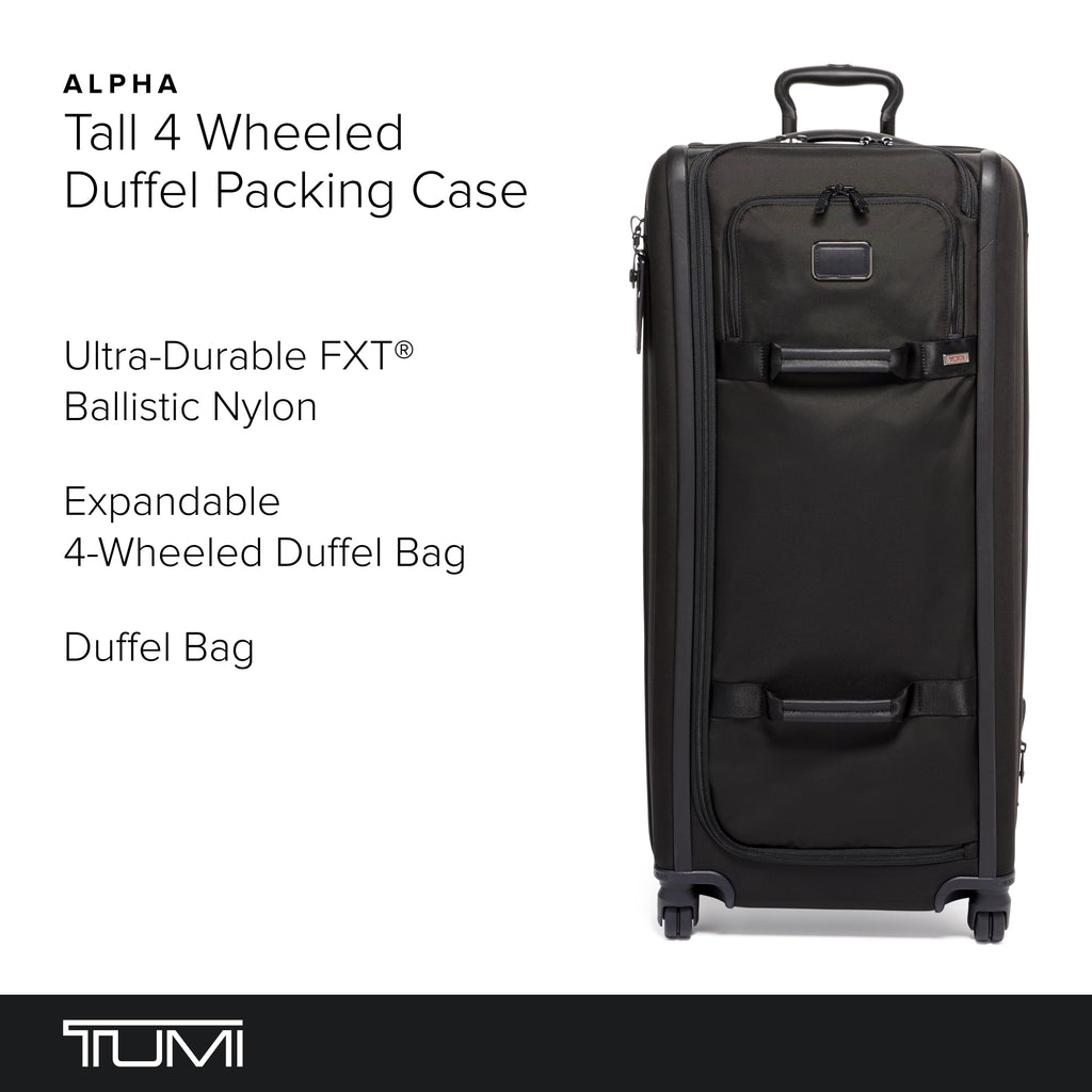 - Expandable Travel Suitcase: The TUMI Alpha Tall 4 Wheeled Duffel Packing Case merges the flexibility of a duffel suitcase with wheeled convenience, expanding up to 2" for added space