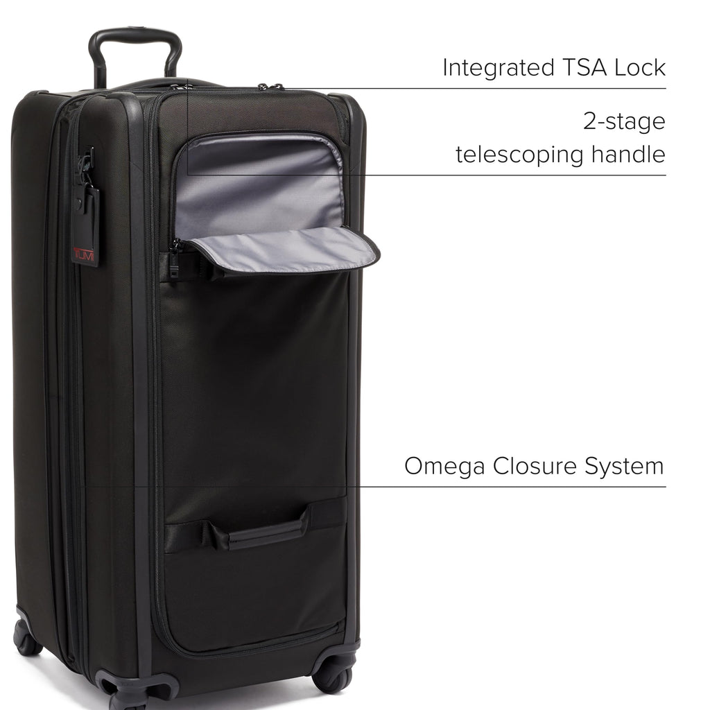 Travel effortlessly with the TUMI Alpha Tall 4-Wheeled Duffel Packing Suitcase, the pinnacle of sophisticated travel gear. Combining the practicality of a duffel bag with the smooth maneuverability of a 4 wheeled suitcase, this duffel with wheels ensures seamless transitions and maneuverability. Crafted from durable FXT ballistic nylon, this rolling suitcase is built to withstand frequent travel while maintaining a sleek, professional look. Whether you need a duffel or a versatile suitcase with wheels, this product excels in performance.This duffel bag suitcase for travel offers superb organization with a large mesh zip pocket, zip divider, and an innovative packing system with five collapsible dividers, minimizing movement and wrinkles. The duffel bag with roller wheels also features a built-in TSA lock for security, while the X-Brace 45 telescoping handle and dual spinner wheels ensure effortless gliding. Ideal for efficient and stylish travelers seeking a spinner carry-on experience.Expand your packing capacity effortlessly with the zipper expansion feature, turning this spacious duffel luggage into an even larger travel companion. Whether it's a short business trip or an extended vacation, this travel suitcase ensures ample space without compromising organization. With the TUMI Tracer program, you gain reassurance and the ability to trace lost or stolen items.We design for you. Our commitment to exceptional quality and high performing products have made TUMI the leading lifestyle and accessories brand that travelers depend on consistently. This is what we call the TUMI Difference.By putting excellence and quality first, we are committed to creating quality TUMI products that have lifelong purpose, are supported by our rigorous testing standards, use recycled materials and our global repair network.