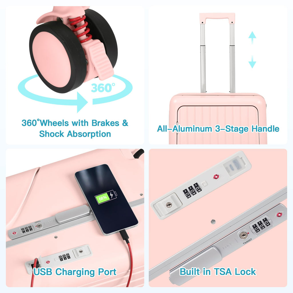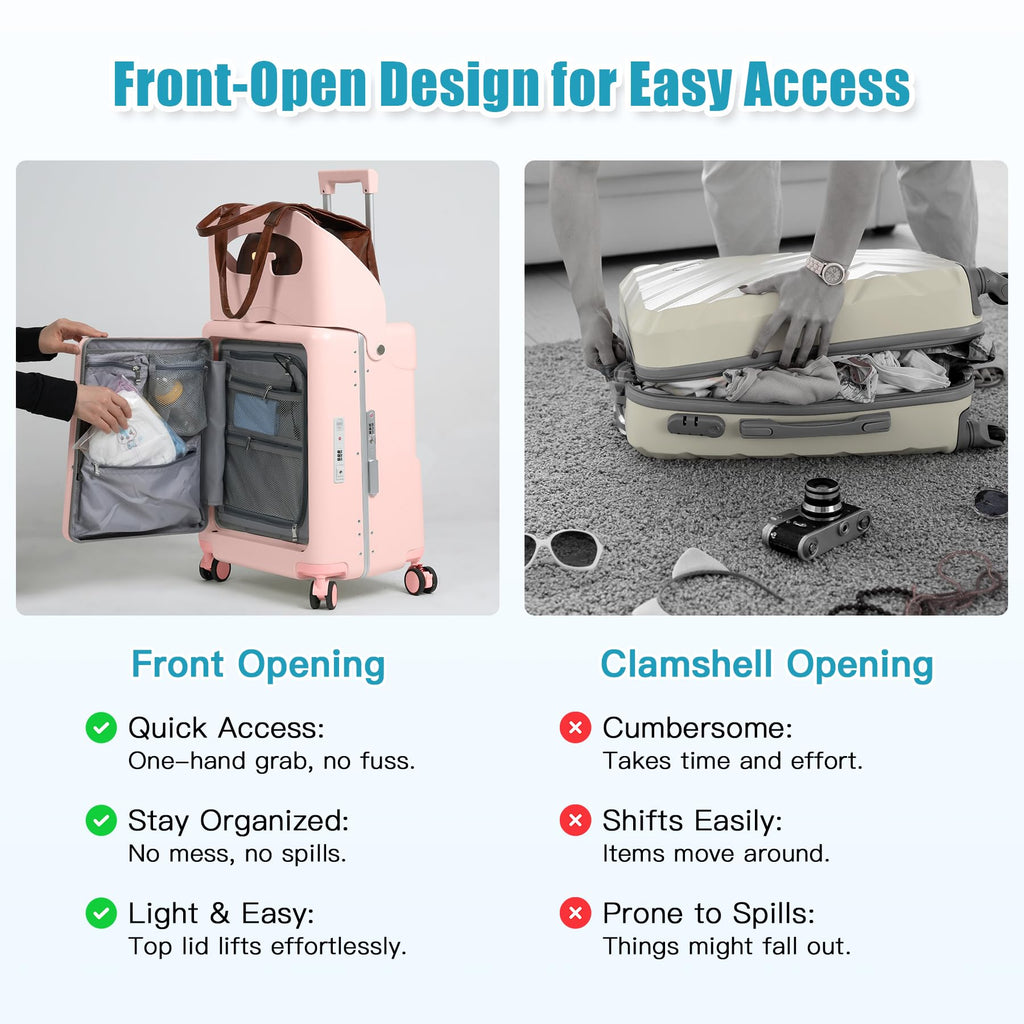 • 【Front-Open Design】 Access your belongings easily with the front-opening design that allows you to grab items with one hand. The top lid opens smoothly for quick access. The durable all-aluminum 3-stage telescoping handle offers easy maneuverability, and the built-in TSA lock adds extra security for peace of mind. Ideal for both kids and adults, this ride-on suitcase ensures a smoother, more efficient travel experience.