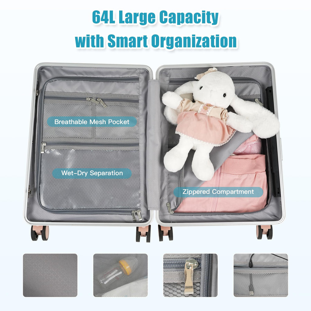 advwin 20" Carry-On Luggage with Seat for Kids & Adults, Lightweight Hardside Ride-On Suitcase with Front Opening, TSA Lock, 360° Spinner Wheels (Pink, 20-inch)