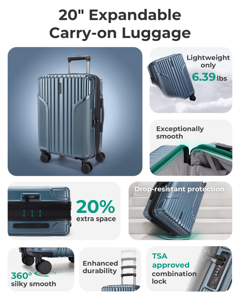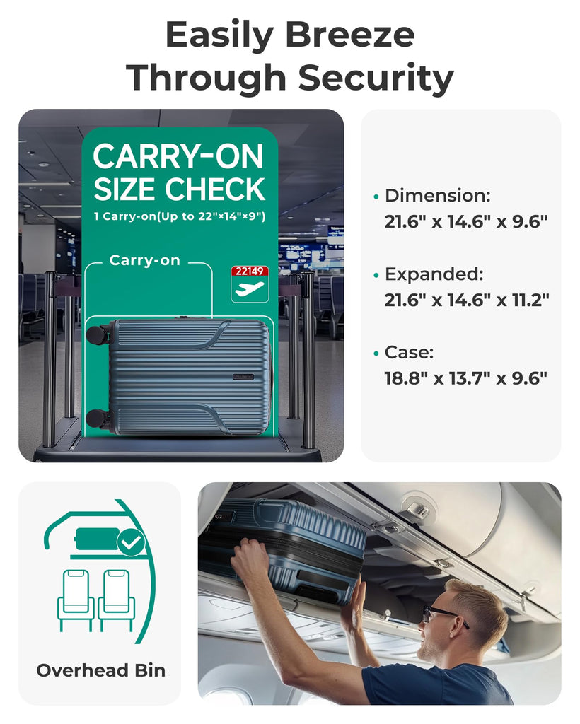 - Convenient Carry-On Size: Designed to meet the overhead bin size limits of most airlines, this carry on luggage with wheels measures 21.5" x 14" x 9.3" (including wheels and handle) and weighs just 6.7 lbs. Expandable carry on luggage offers an ideal mix of compactness and packing space, making it your reliable travel companion