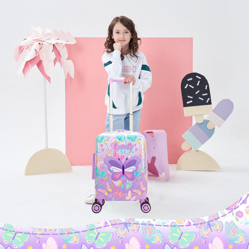 Brand: EsteemlyColor: G ButterflyFeatures: 2 in 1 Gift Package Kids Luggage Set: You will get 1 16 inch suitcase which airline approved,1 neck pillow case and a free luggage tag gift. The smooth rolling spinner wheels and telescoping handle enables children to effortlessly push or pull the luggage that feels...