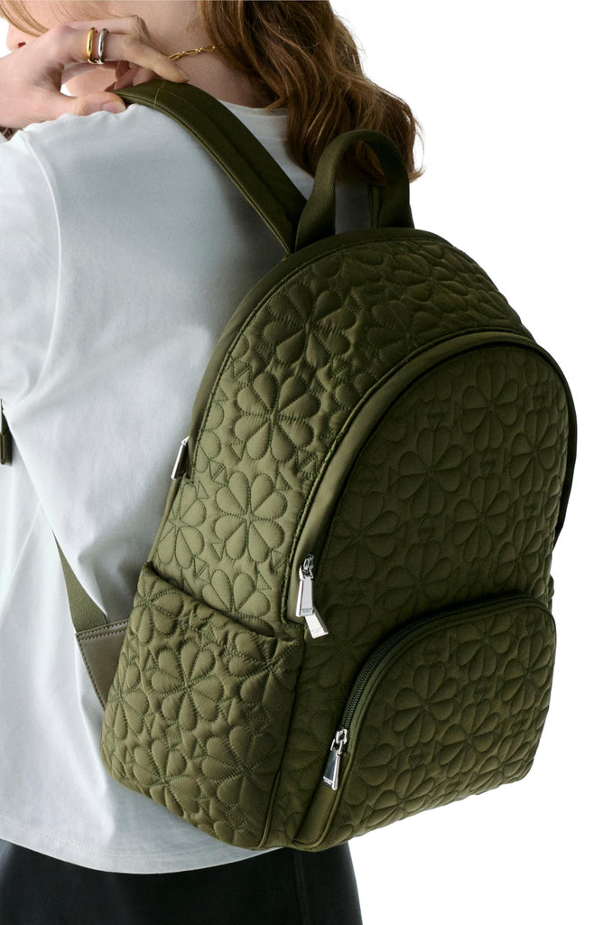 Kate Spade New York Womens Tilly Quilted Fabric Large Backpack, Oolong Green, One Size