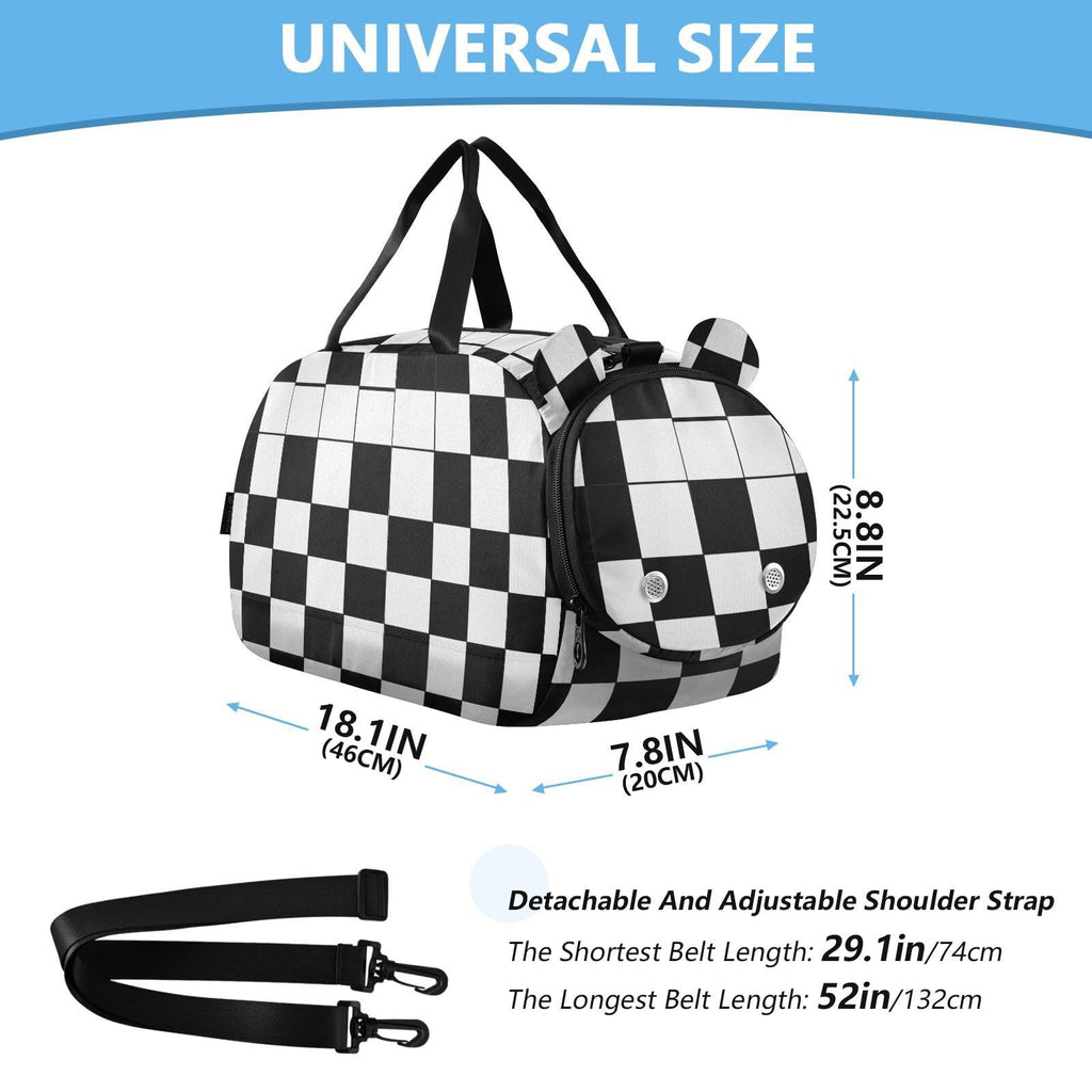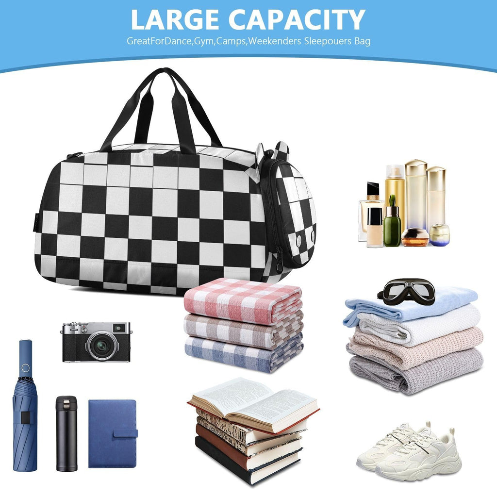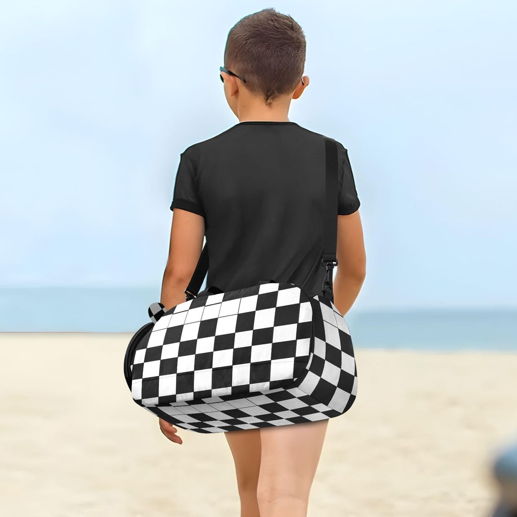 Quteprint Kids Sports Duffel Bag for Boys & Girls - Black White Plaid Buffalo 100% Polyester Gym Bag with Separate Shoe Compartment, Adjustable Shoulder Strap, Compact Travel & Workout Gear Bag