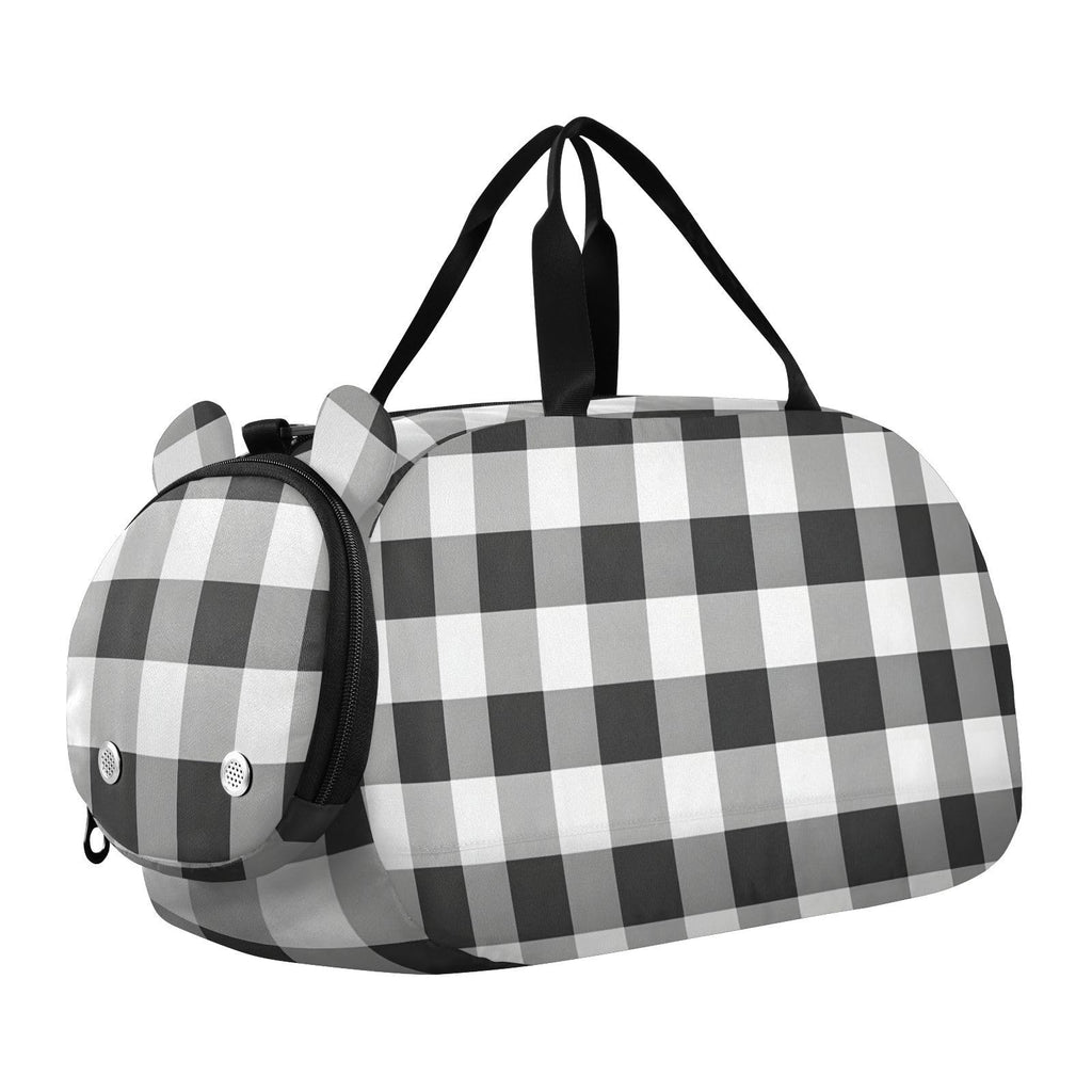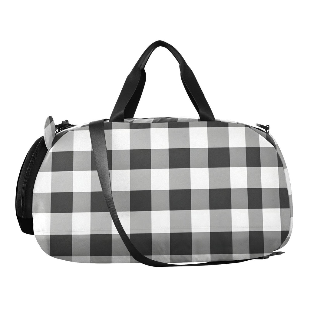 Quteprint Kids Sports Duffel Bag for Boys & Girls - Black White Plaid Buffalo 100% Polyester Gym Bag with Separate Shoe Compartment, Adjustable Shoulder Strap, Compact Travel & Workout Gear Bag