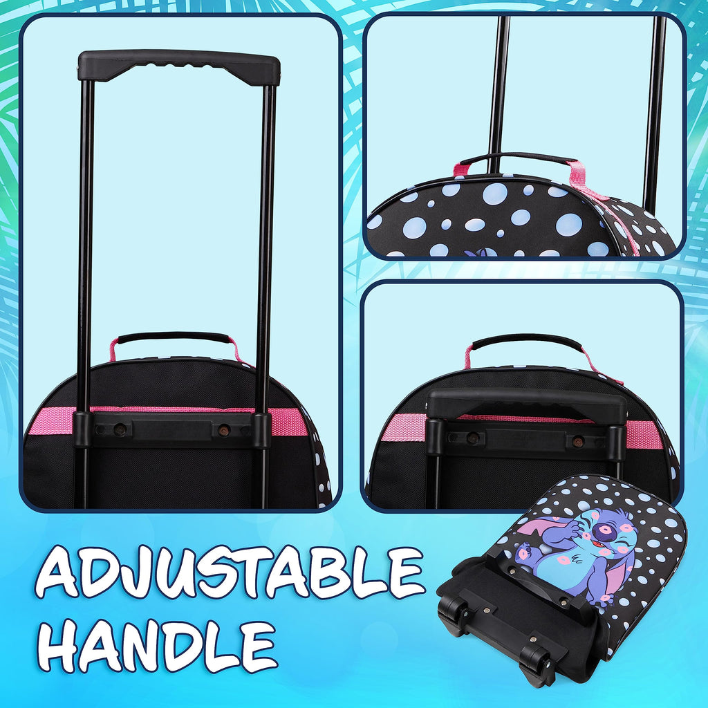 Brand: DisneyColor: Black StitchFeatures: Sized for kids’ travel needs: Inner dimensions of 16.0 × 11.6 × 5.3 inches and a 16.1-liter capacity offer space for clothing, books, and essentials on short trips or daily activities Designed for easy movement: Telescoping handle extends smoothly, while two rear wheels allow young users...