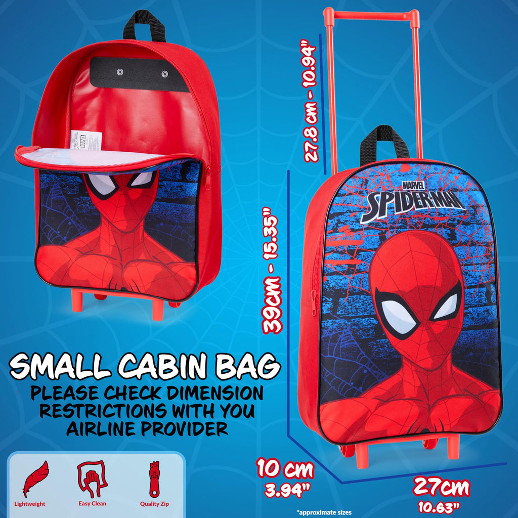 - Spiderman Kids Suitcase - Let your child travel with Spiderman's superpowers in this foldable trolley bag. Featuring a vibrant Spiderman design and two wheels, it’s perfect for young adventurers