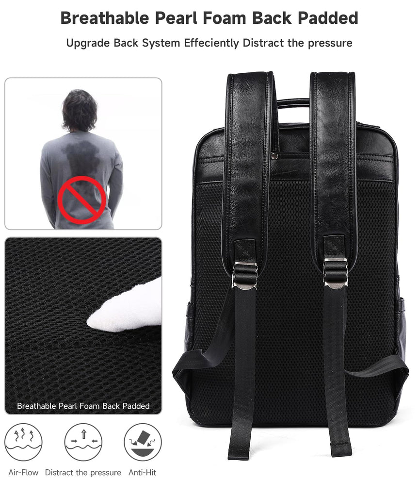 • [QUALITY MATERIAL]Made of high-quality PU leather material with reinforced stitching,soft fabric lining adjustable shoulder straps for convenience.Meanwhile this fashion male backpack have comfortable soft padded back design and durable, wearing-resisting and easy to clean. Adjustable shoulder straps wicker reinforced design can prevent them from slipping, and make laptop backpack fit your body shape and shoulders better. This water resistant laptop bag will be a perfect backpacks for daily