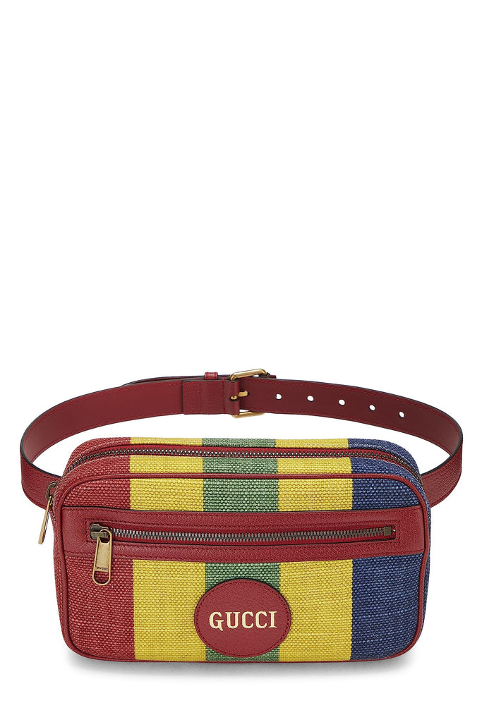 Gucci, Pre-loved Red Leather & Canvas Sylvie Baiadera Belt Bag, Multi