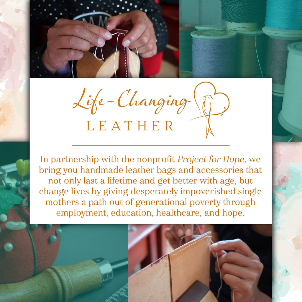 - LIFE-CHANGING LEATHER HANDMADE BAGS & ACCESSORIES not only last a lifetime and get better with age -- but change lives by giving desperately impoverished single Guatemalan mothers a path out of generational poverty through employment at a fair wage