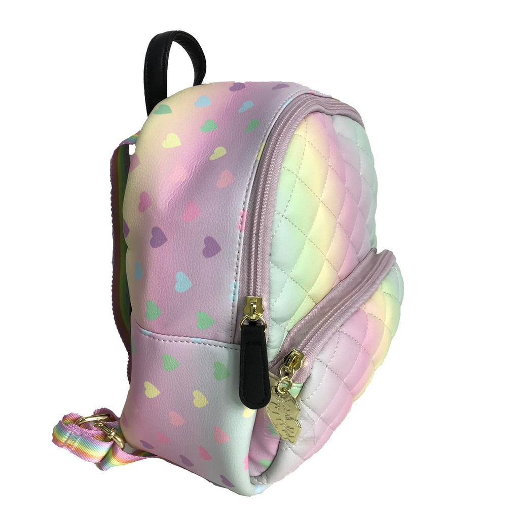 Luv Betsey Johnson B-Peyton Rainbow Multi Mini Backpack, Women's Pastel Hearts Faux Leather Handbag, Quilted Diamond Pattern Rucksack