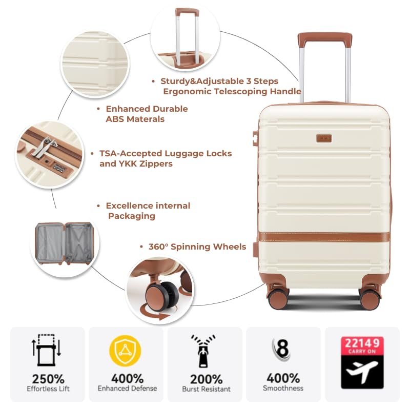 NEISIA Luggage Sets 3 Piece with spinner wheels, PC+ABS Hard Shell Travel Luggage,Lightweight Carry-on suitcases with TSA Lock,YKK Zippers (beige)