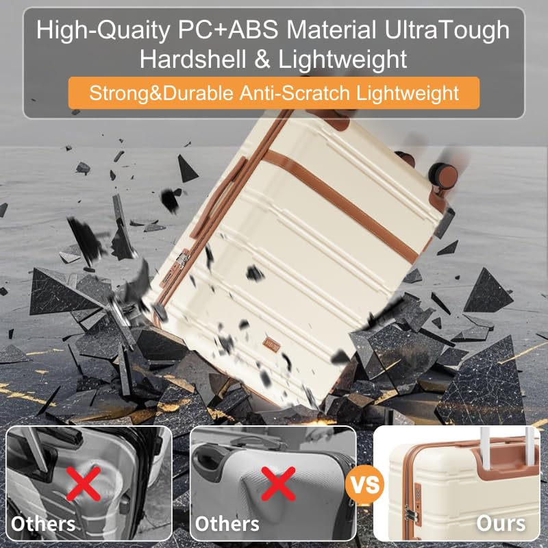 - 【PC+ABS Lightweight Durability】Crafted from ultra-strong yet lightweight PC+ABS hybrid material, this luggage set combines scratch-resistant protection with a rugged hard-shell design, offering superior impact resistance for worry-free travel.