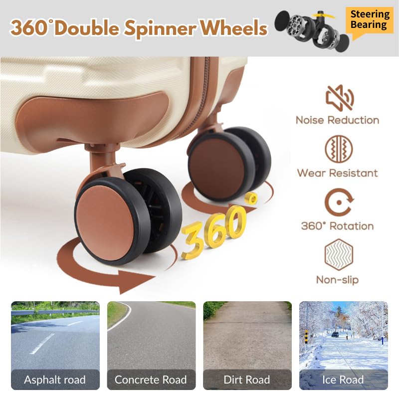 - 【8 Smooth Rolling Silent Wheels】Equipped with 8 high-performance silent spinner wheels, the dual-wheel design with shock absorption ensures smooth 360° maneuverability. Enjoy whisper-quiet rolling and precise directional control on any terrain.