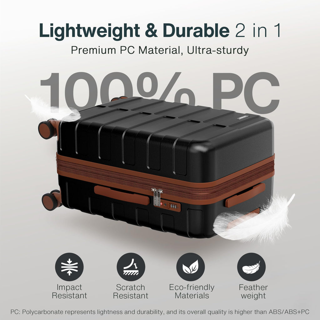 - SUPER DURABLE, PC LIGHTWEIGHT HARDSHELL LUGGAGE: 100% Polycarbonate (PC) material travel suitcase is the representative of lightweight and durable. Every part of the luggage and even every screw is strictly inspected and then sent to you after passing professional luggage testing, designed to withstand the harshest environments. Durability will be proven by time