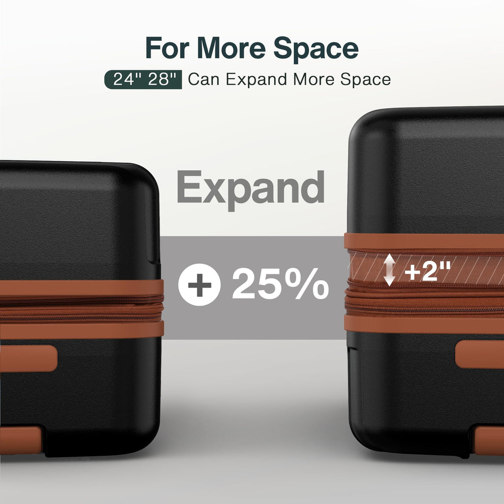 - EXPANDABLE LUGGAGE LARGE CAPACITY, TRAVELER'S FAVORITE: 24" and 28" expandable +25% space, never bother packing the last few items again. Full zippered compartments and X-cross straps provide practical storage space for your items. Keep your items organized after every trip!