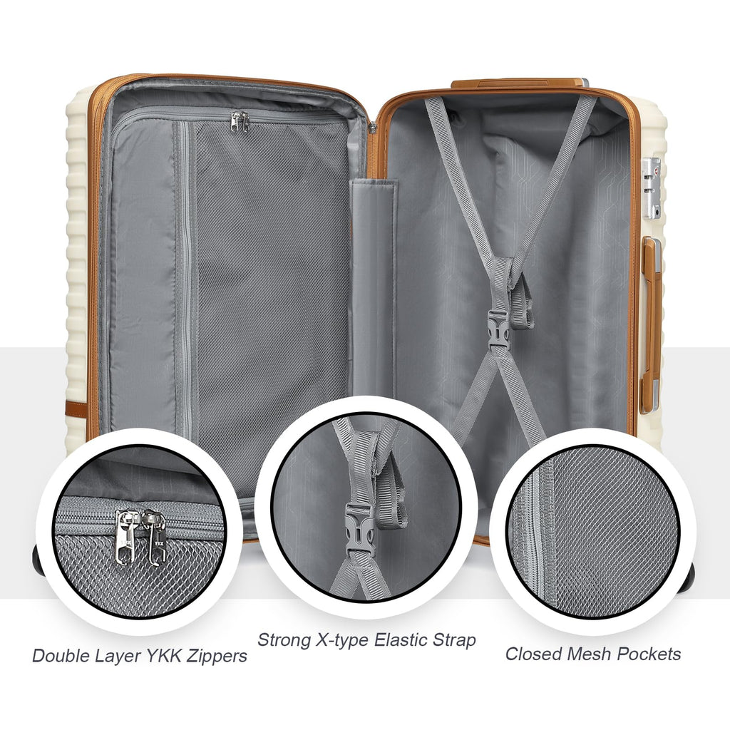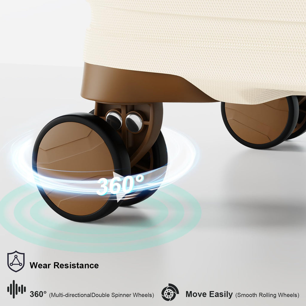 Joyway Luggage Set 3 Piece Suitcase Sets with Spinner Wheel,Hardside Expandable Travel Laggage with TSA Lock (13/20/24/28 White brown