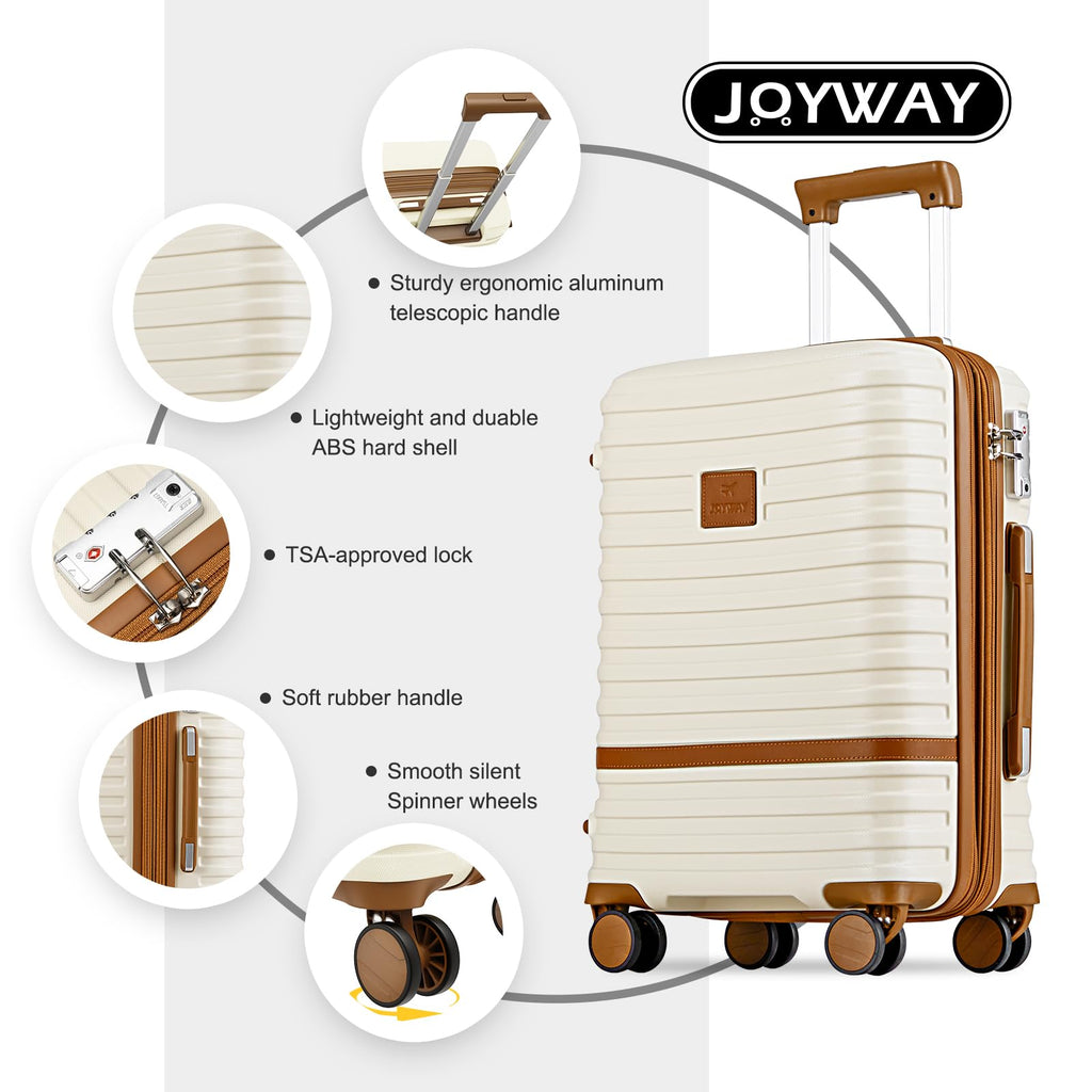 Brand: JoywayColor: White brownFeatures: 3 Piece Luggage Set: This suitcase set included 20 inch carry on luggage and a travel bag and a toiletry bag. Fully equipped for all your travel needs. Expandable Capacity: Designed with an expandable layer to add 20% more space to your rolling luggage. Secure Travel:...