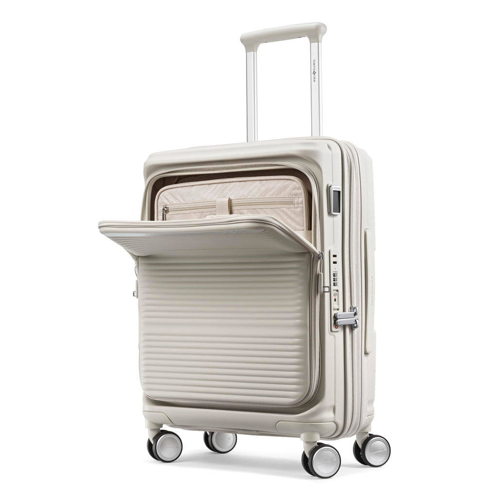 Samsonite Paralux Global Carry-On Luggage - Innovative Design - Quick Access Front Pocket - Dual Suspension Wheel Technology - TSA Lock - Expandable - Includes Removable Packing Cubes - Stone Grey