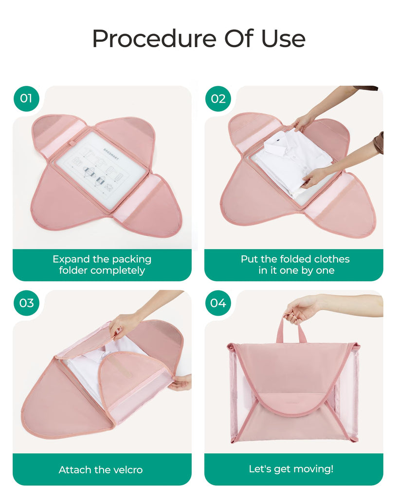 BAGSMART Garment Folder Packing Cubes for Travel, 4 Set Lightweight Travel Cubes for Wrinkle Free, Durable Suitcase Organizers Bag Set for Travel Essentials Baby Pink