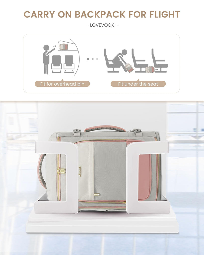 Brand: LOVEVOOKColor: Gray & PinkFeatures: Travel Backpack Carry on Flight Approved: Precisely designed at 14"x8"x18" (40L) and 14"x8"x19.5" (50L) to meet the strict requirements of airlines like Spirit and JetBlue. Fits seamlessly overhead or under the seat, guaranteeing you avoid extra fees. The perfect choice among travel bags for women....