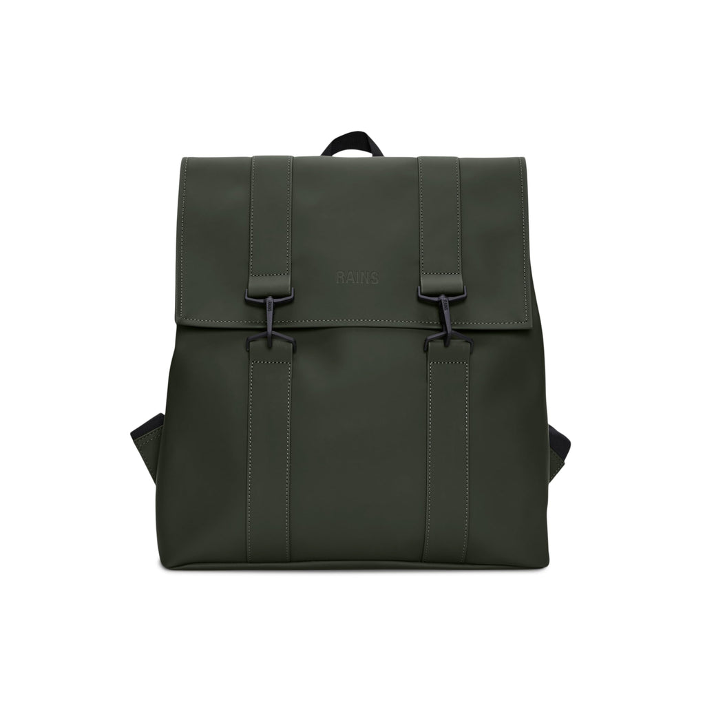 Brand: RAINSColor: GreenFeatures: WATERPROOF: This waterproof backpack for men and women reinterprets the classic backpack for contemporary city-ready wardrobes. Focal points for this otherwise minimalistic silhouette arrive as dual straps and characteristic signature carabiners. FEATURES: Adjustable backstraps, padded laptop pocket fits 15”, flap with signature carabiner closures, snap compressions at...