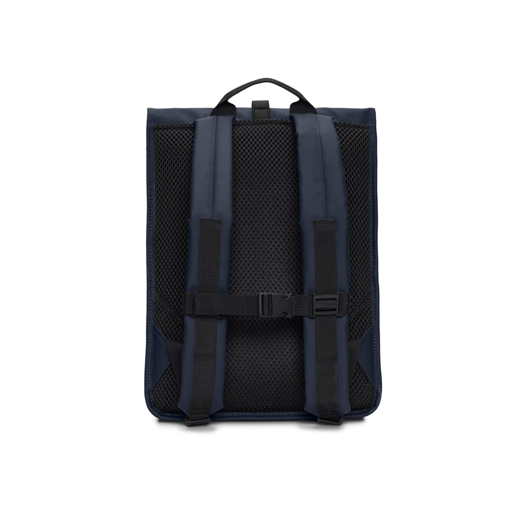 Brand: RAINSColor: NavyFeatures: WATERPROOF PERFORMANCE: Product is cut from RAINS’ signature PU fabric with welded seams and withstands an 8000 mm water column pressure. It offers water resistant and water repellent protection against light rain without full submersion. Concealed back-yoke vents enhance breathability. FEATURES: Rolltop opening secures with snap compression...