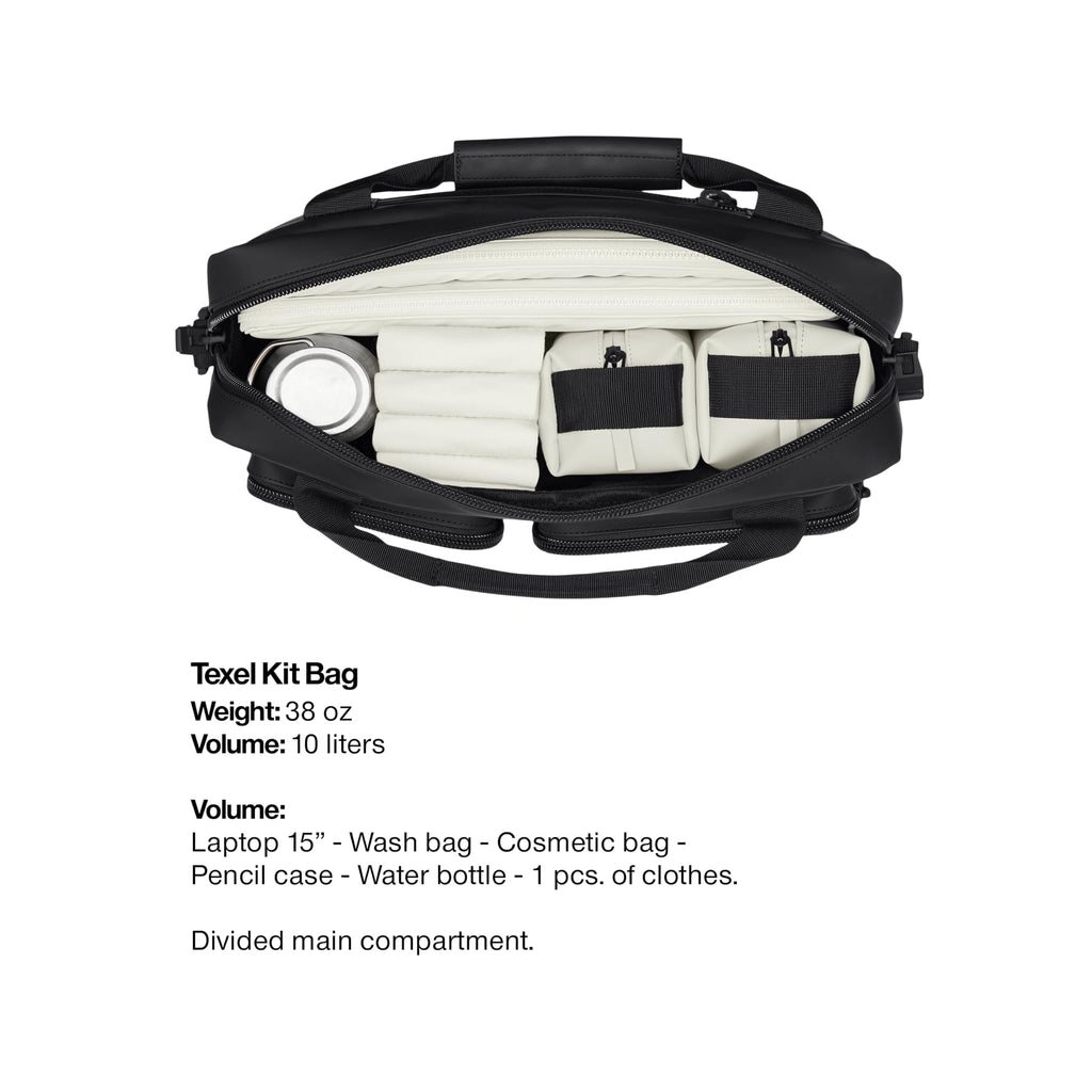 - FEATURES: Zip closure secures a divided main compartment. Padded sleeve fits 15" laptop. Internal mesh pockets and front zip pockets organize essentials. Detachable adjustable webbing shoulder strap, webbing carry straps with handle wrap, and a trolley sleeve with zip pocket enable versatile carry.