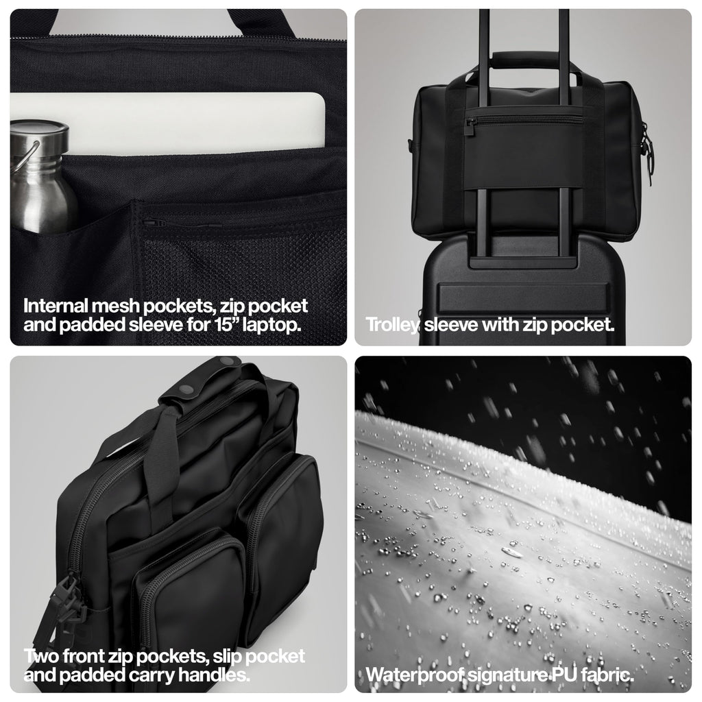 - WATERPROOF PERFORMANCE: Product is cut from RAINS’ signature PU fabric with welded seams and withstands an 8000 mm water column pressure. It delivers water resistant and water repellent protection against rain and ensures contents stay dry in all conditions.