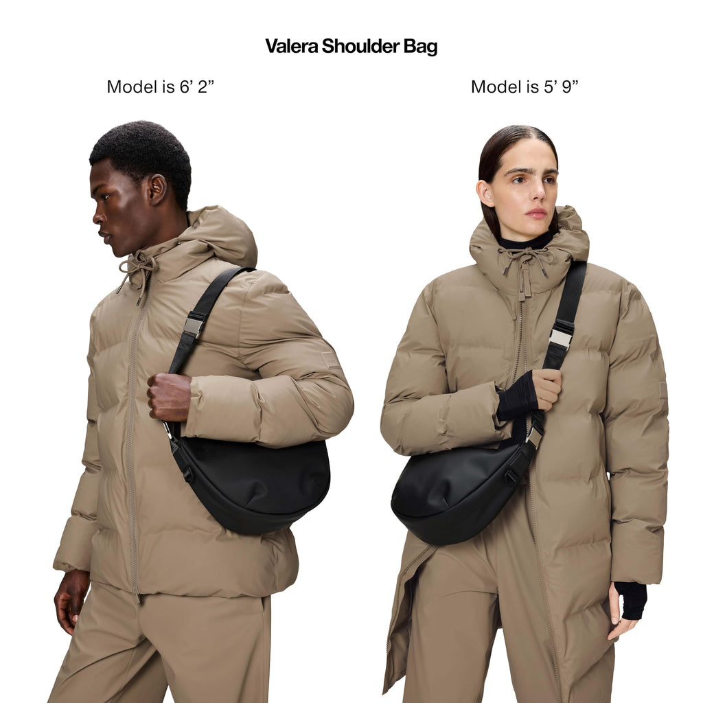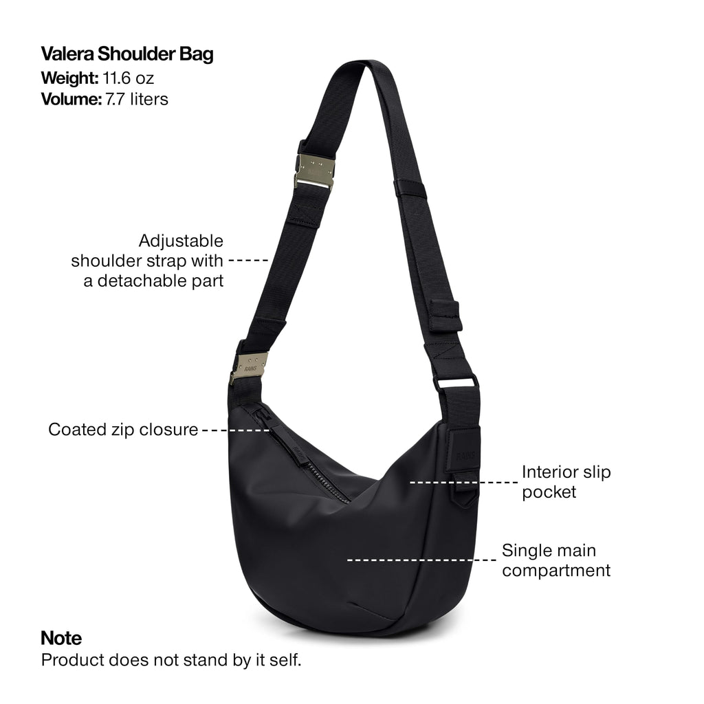 RAINS Valera Shoulder Bag, Unisex for Men and Women, Black – Waterproof PU Fabric Crossbody Bag