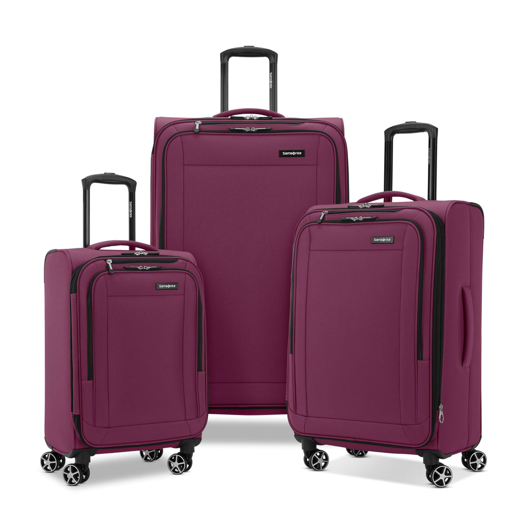 Brand: SamsoniteColor: RaspberryFeatures: 3-piece set features Dual Spinner Wheels for an effortless glide; as well as plenty of pockets on the exterior and ample space in the interior for maximum packing capabilities! Mutli-Stop trolley 100% Polyester Comfortable padded top and side carry handles DIMENSIONS: Carry-on 14 x 20 x 8.5...