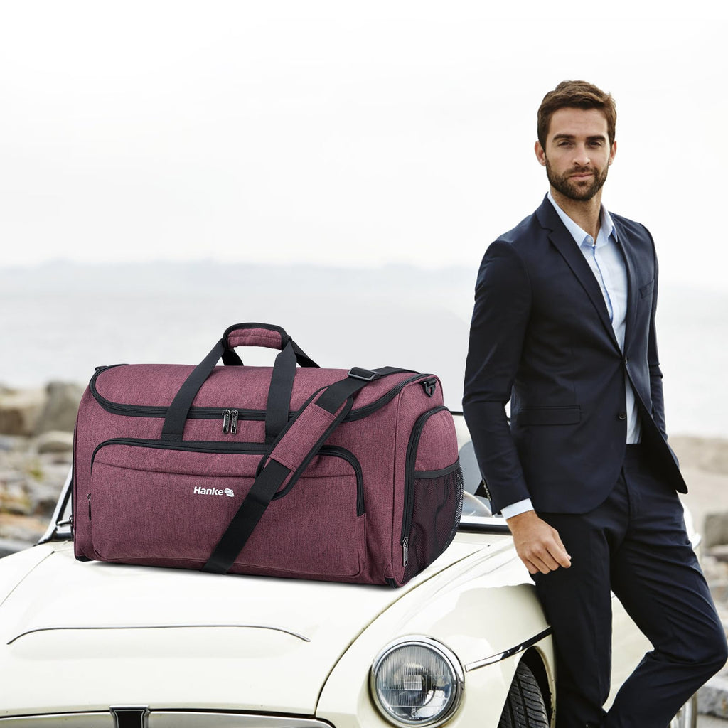 Brand: HankeFeatures: Garment Bags Size: Our suit bag measures 22x 11.42x 13.39 inches,Weight: 2.98 pounds.Ideal for the people who go for a business trip, vacation, gym or destination wedding. Humanized Design: Compared with others on the market, this halfday travel garment duffle bag uses one zipper design to ensure the...