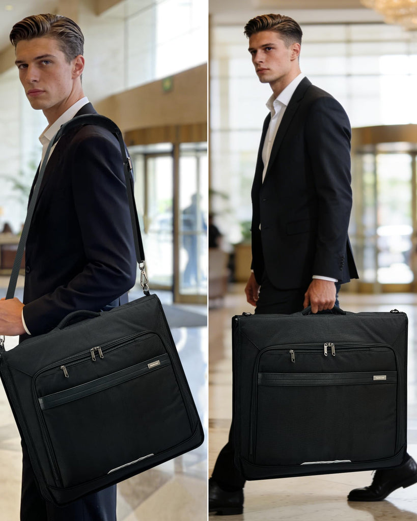 - Wrinkle-Free System - Keep Suits Sharp & Ready: Engineered as a premium garment bag for travel, the full-flat layout, 4 loop holders, dual straps, and a stabilizing panel keep your suits, shirts, dresses, and uniforms wrinkle-free. Ideal as a travel garment bag for business trips, weddings, and formal events—your outfits arrive crisp with no ironing required