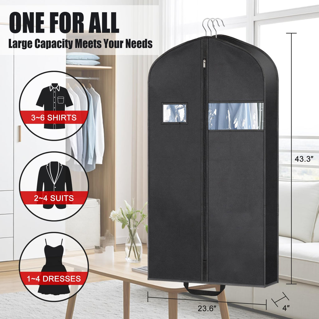 - 【Generous Capacity】 This 43 inch suit travel bags for men features a spacious 4" gusset, allowing you to store up to 4 suits or 6 shirts per bag making it perfect for both closet organization and travel.