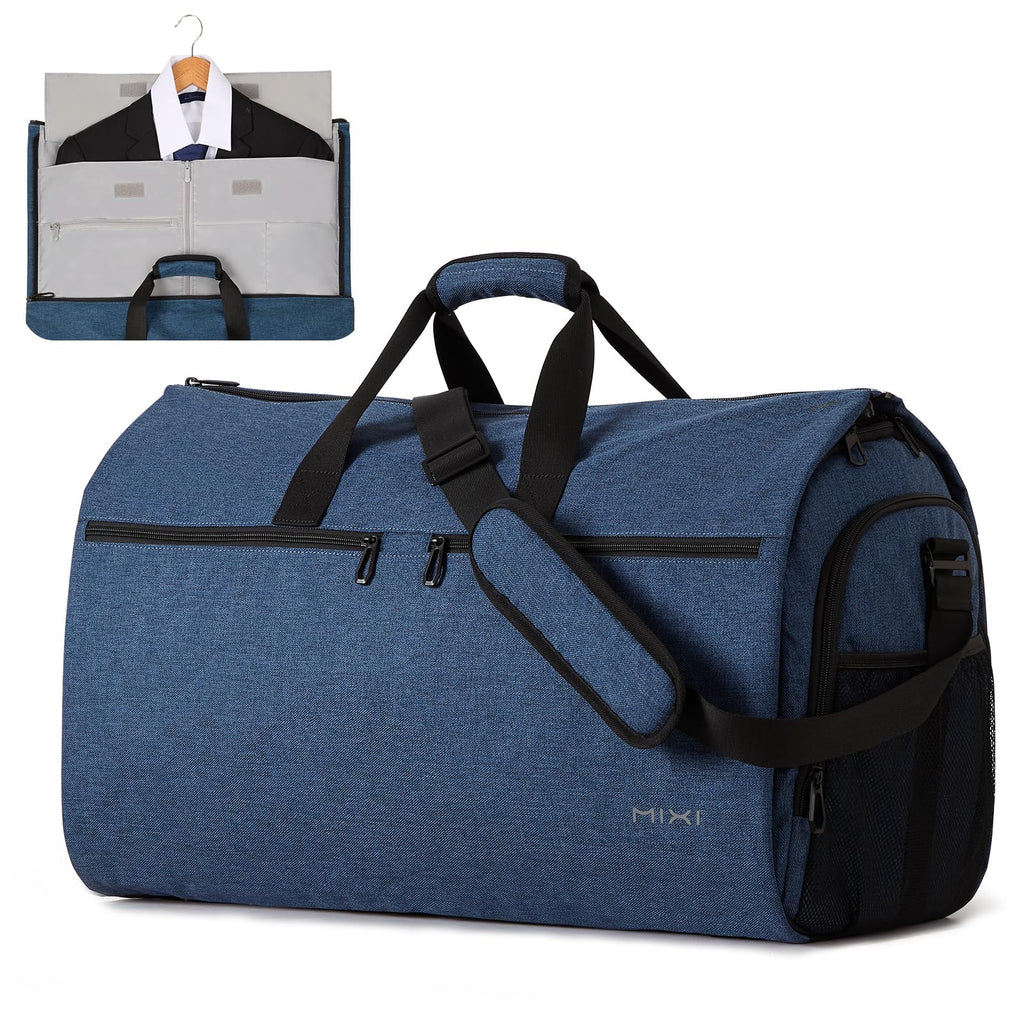 mixi Carry On Garment Bag for Travel 56L Convertible Duffle Bag for Men Women 2 in 1 Hanging Luggage Suitcase Dress Suit Travel Bag with Shoes Pouch, Sapphire Blue