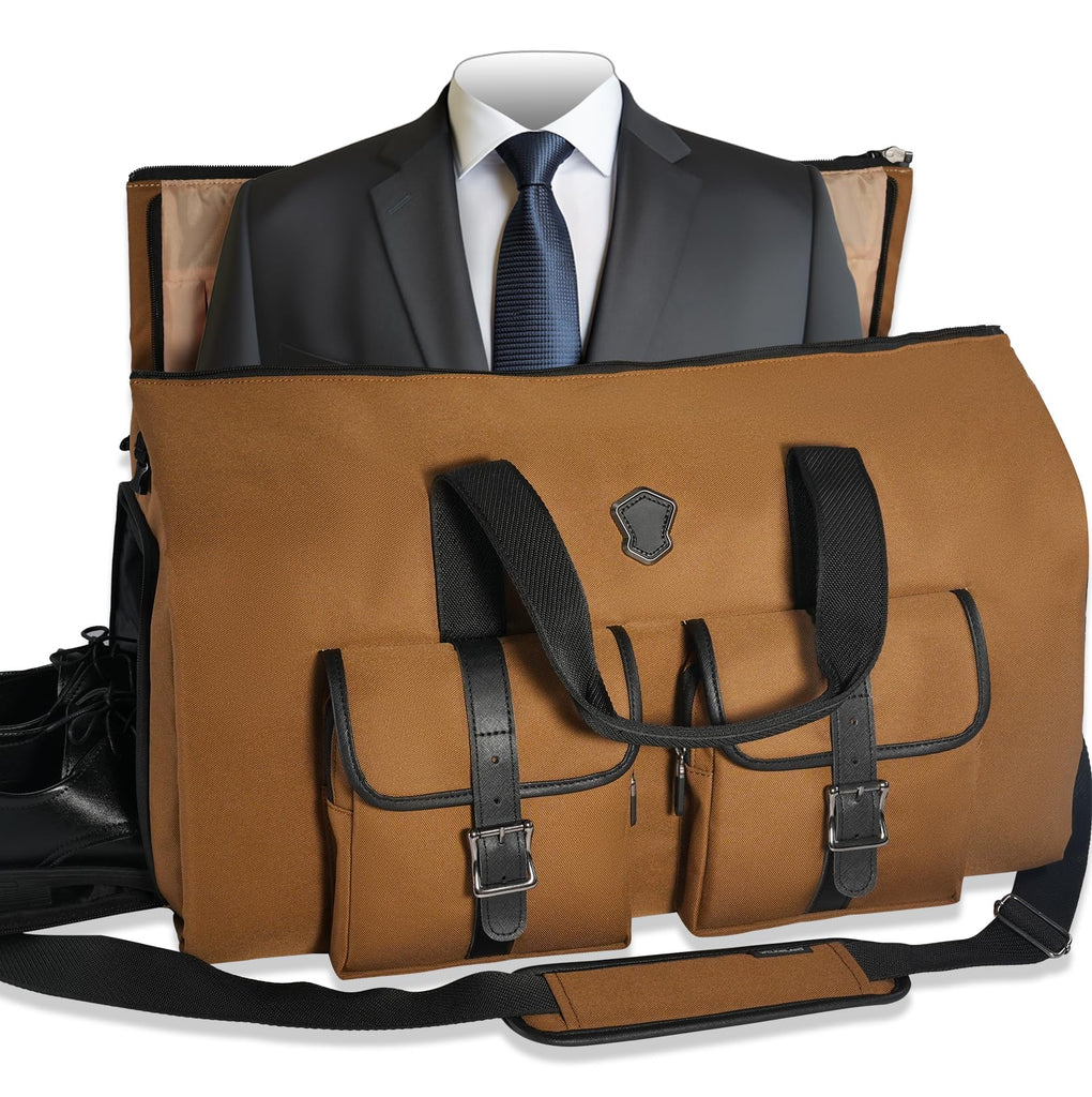 Brand: WELKINLANDColor: BrownFeatures: Easy-Access: This foldable suit bag spreads the main compartment entirely for easy access, it can be used as hanging garment bags, breathable shoe pockets, and 10 separate pockets for quick organization Suits-WrinkleFree: The convertable suit travel bags for men are designed to keep suits or dresses clean,...
