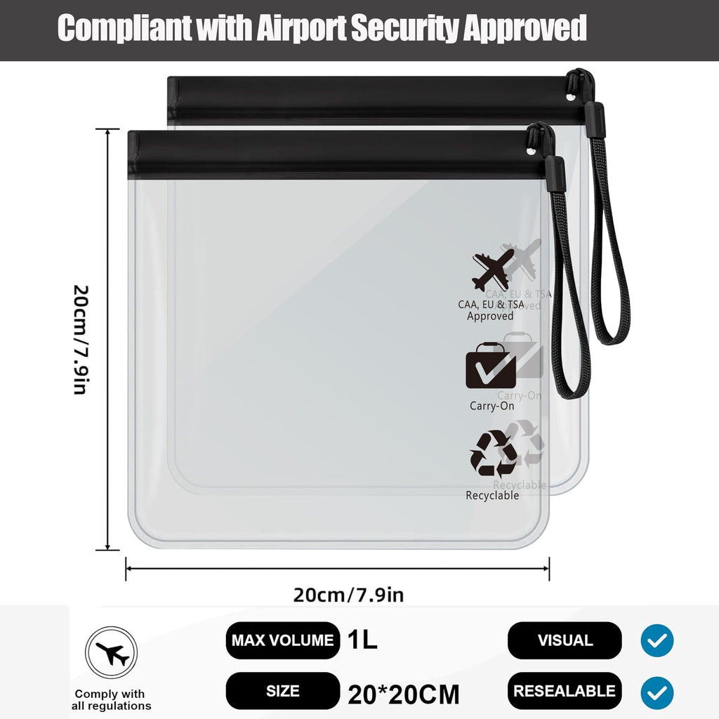 - 【Keep your hands free】: The liquids bag for airport with a handle allows you to keep your hands free when carrying travel documents. They seal at the top and have a short nylon carry handle that you can attach so you can loop it.